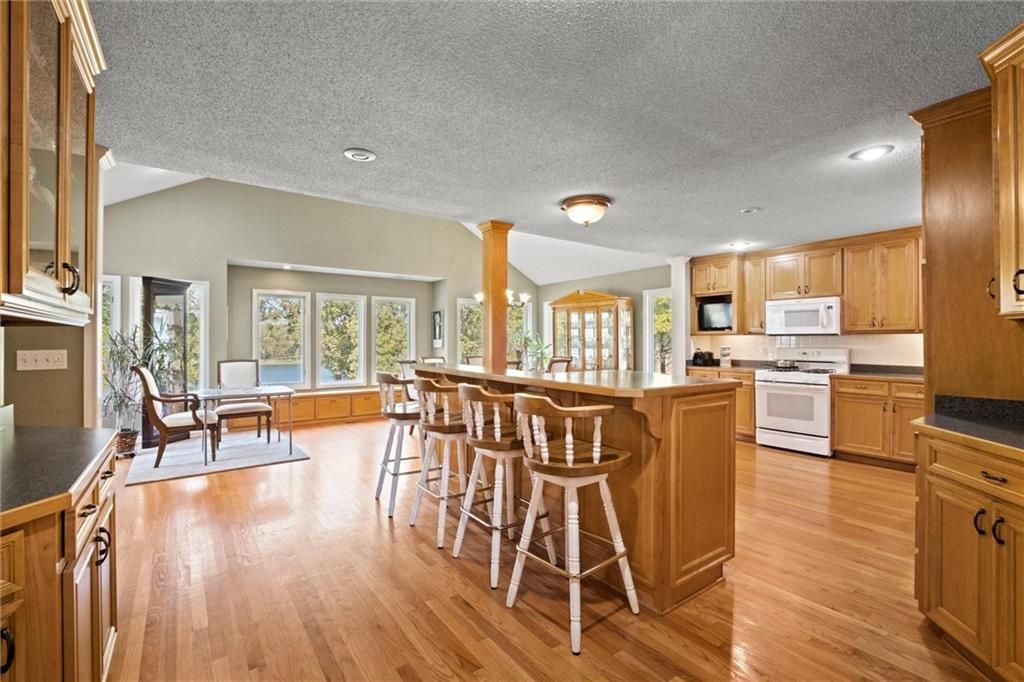 Welcome to a remarkable lakefront sanctuary in Country View Lake, where comfort meets some of the most breathtaking views in the heart of the award-winning Piper school district near the Legends! This spacious 4-bedroom, 2-bath ranch home sits on a beautiful -acre lot with direct access to the water, offering the perfect setting for both relaxing and entertaining! Step inside and explore a WELL cared for home that has been thoughtfully updated with a stunning addition providing a beautifully designed vaulted ceiling that floods the home with natural light and showcases panoramic views of the lake from a wall of windows with SO much gathering space! The heart of the home is an expansive kitchen, complete with custom cabinetry, ample counter space, TONS of cabinets, spacious island and a cozy wood-burning pellet stove - perfect for gathering with family and friends. Bring your own personal style to this one with GREAT space to make your own and add your own personal style or updates. Outside, enjoy the serene lakefront setting - ideal for morning coffee, fishing, boating, or simply unwinding while taking in the incredible views. The acre large lot offers room to play, garden, or host summer cookouts, making it a true extension of your living space to easily kayak or fish! With KGUARD leaf free gutter system and other thoughtful improvements where this home recently received a $25,000 transferable investment in professional foundation support, ensuring long-term structural integrity and providing peace of mind for the next owner! This is more than a home, it is a lakefront lifestyle in the heart of Piper where every day feels like a getaway. Easy access to I-435 with the best of city conveniences like KCI International airport, shopping, dining and more! This home is SPECIAL has been extremely well cared by one amazing family who is passing the baton for a new family to start building a lifetime of memories at the lake!
