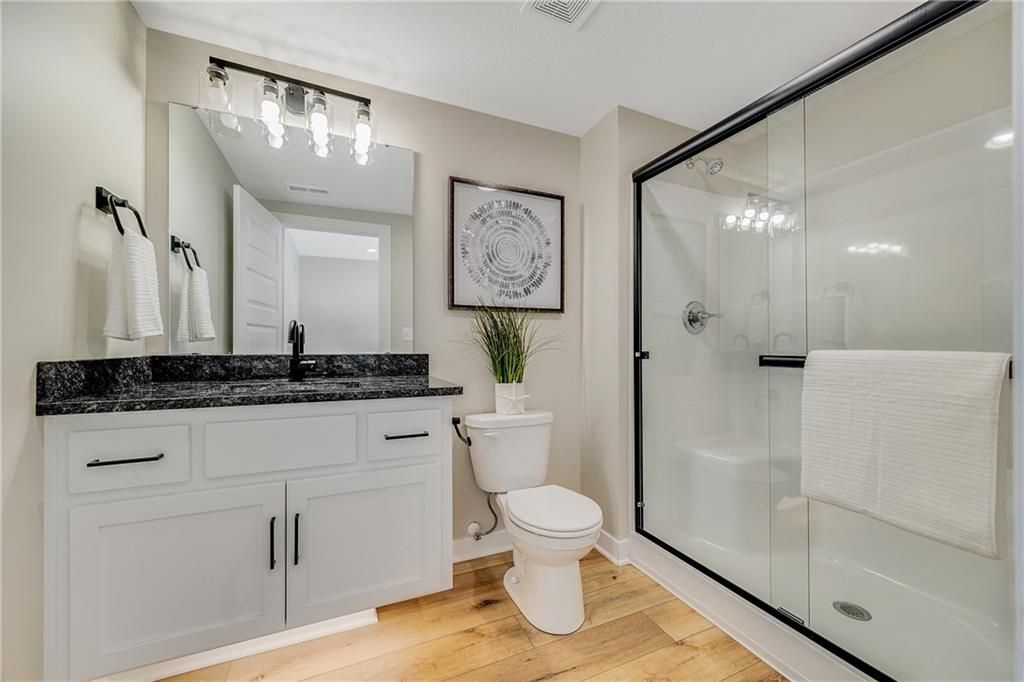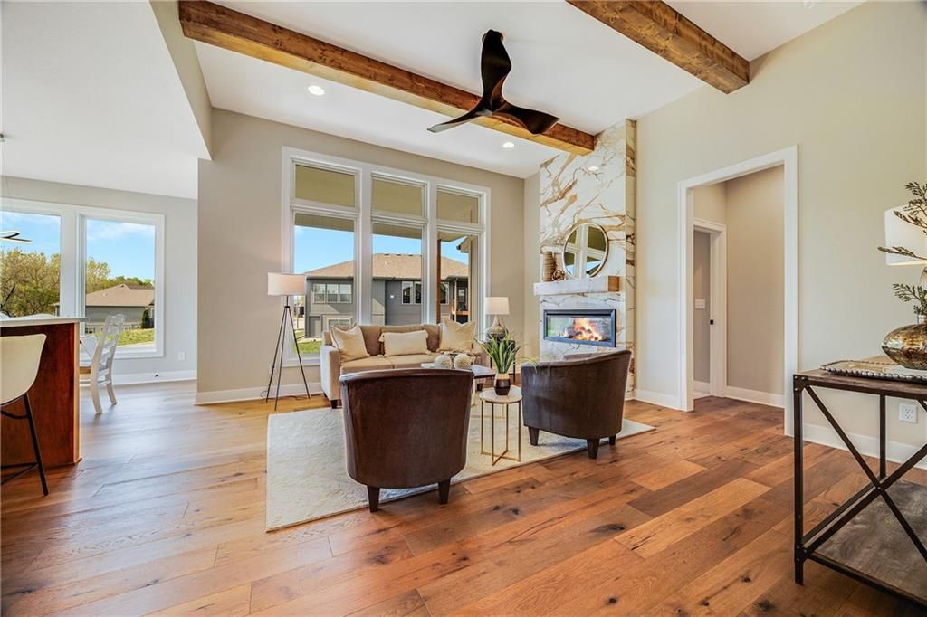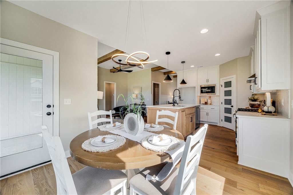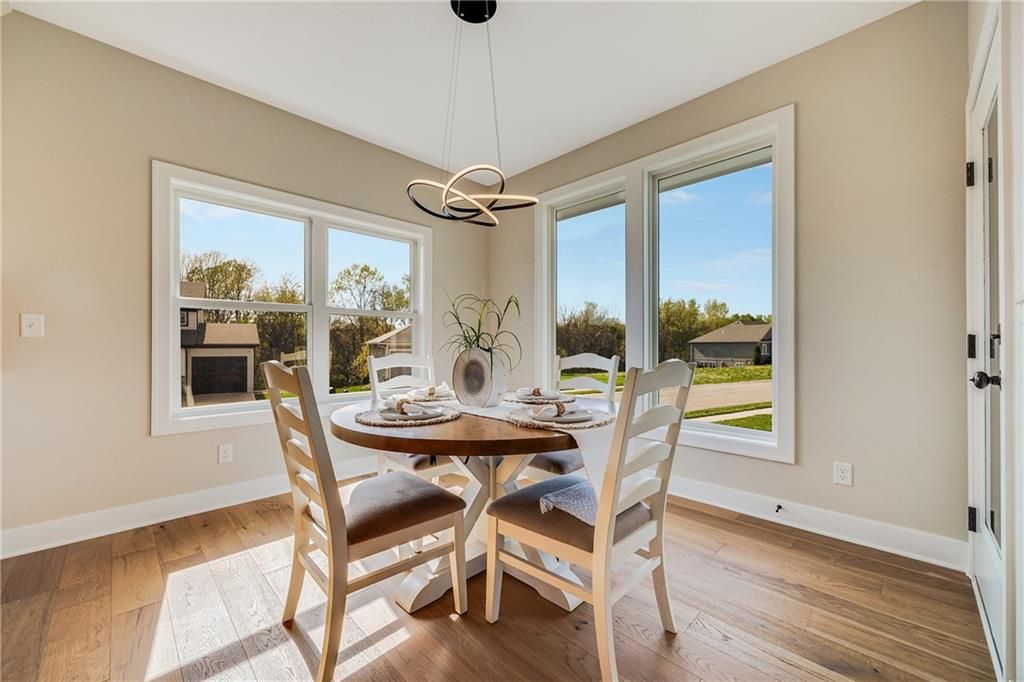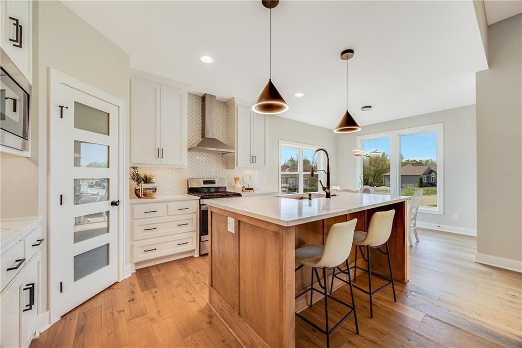 Come home to quality in the latest offering from A Place Called Home Construction Company! This stunning reverse 1.5-story home will impress you the moment you step through the front door! Beautiful wood floors flow throughout the entryway, family room, dining area, and kitchen - creating a seamless and inviting layout perfect for entertaining. The heart of the home is the gourmet kitchen, complete with a large quartz-topped island, stainless steel appliances, a walk-in pantry, and stylish tile backsplash. A cozy gas fireplace adds warmth and charm to the family room. The luxurious owner's suite offers a peaceful retreat with an eye-catching accent wall and spa-like en suite bathroom featuring a shower, dual vanities, and an large walk-in closet. Downstairs, the finished lower level provides additional living space, ideal for a second family room, home office, gym, or guest suite - whatever suits your lifestyle.