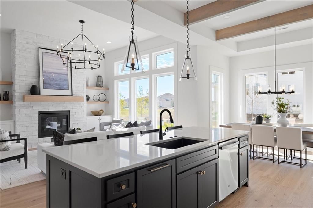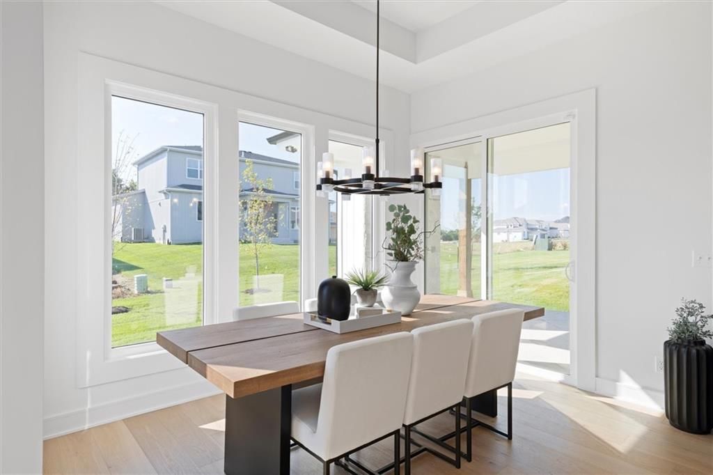 MODEL HOME. NOT FOR SALE AT THIS TIME - The Gunnison V by JFE Construction is a 4 bed, 3 bath Reverse 1 Story located on Lot 50. This favorite plan is an ideal Reverse with just over 3100 square feet for spacious main floor living and lower level for entertaining. The vaulted great room provides a stunning entry with upgraded features throughout the home. Kitchen boasts a large island with beautiful, upgraded quartz tops, stainless appliances, and a large pantry with built in coffee bar. The covered patio with fireplace is perfect for outdoor entertaining. The lower level includes a spacious family room, wet bar with island, and a dedicated workout room. Taxes are estimated. Close to schools, highways, shops and restaurants!