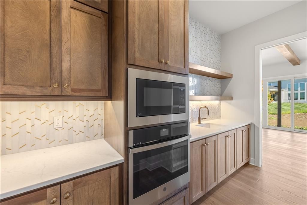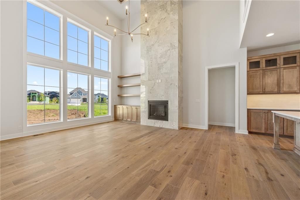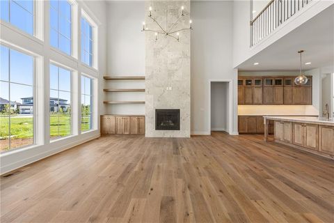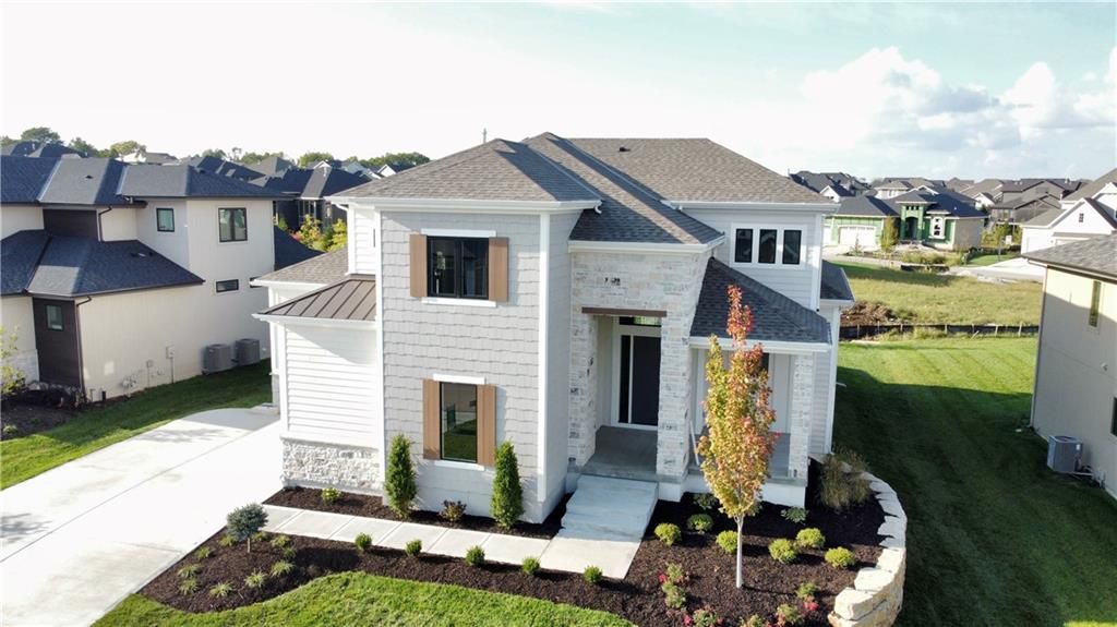 SPACIOUS 5 BEDROOM 1.5 Story with split car garage, the Birmingham II by SAB Homes located on Lot 165 is ready for MOVE IN! This unique 1.5 Story plan has everything you are searching for with a soaring great room ceiling, a main floor primary bedroom, upstairs bonus loft space plus 4 BEDROOMS upstairs. Sought after split car garage with epoxy finish already added! The kitchen is made for a chef, with a 5 burner gas cooktop, convection oven, large quartz island, walk-in pantry with prep kitchen with a 2nd convection oven & 2nd sink! Enjoy a large dining room with built in hutch wall and sliders to enjoy your covered patio. The main floor primary suite is a calming retreat with double vanities, walk-in shower, freestanding tub, plus a large walk-in closest with its own laundry hook-ups. The upper level features a unique loft for gaming or craft room at the top of the stairs with plenty of natural light. There is a space for everyone with four bedrooms upstairs, each with a walk-in closet. plus a second floor laundry room with a sink. The best part is the split garage with added room for storage. Outside features a large front porch with real stone trim, beautiful rock wall, landscaping and sprinkler system. Enjoy the large level backyard ideal for pool or easy main level access form the covered back patio. Century Farms neighborhood has a spectacular club house with a fitness center and resort style swimming pool with slide. There are plenty of neighborhood activities with a fire pit, two pickle ball courts and a basketball hoop, farm themed animal kids play area and a community garden. Century Farms is conveniently located near the brand new Bluhawk shopping center, Heritage Park, the Johnson County Trail system and the Overland Park Arboretum. Come join the fun in Century Farms, a unique one of a kind upscale new home community in Overland Park. BLUE VALLEY SCHOOLS