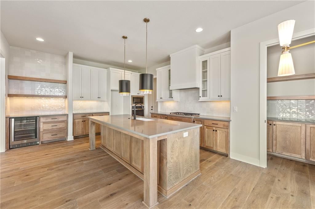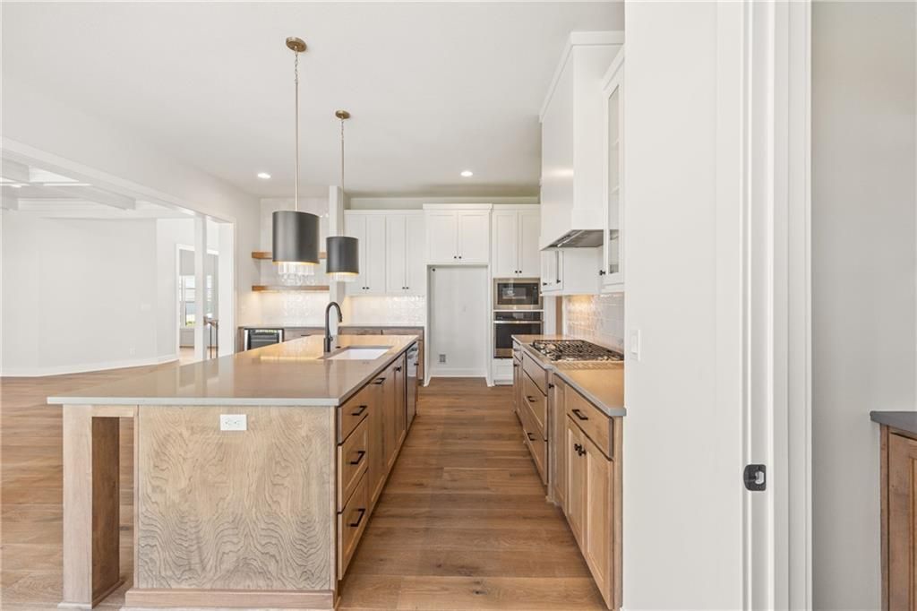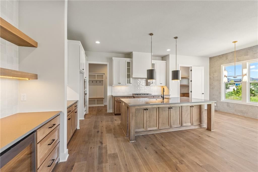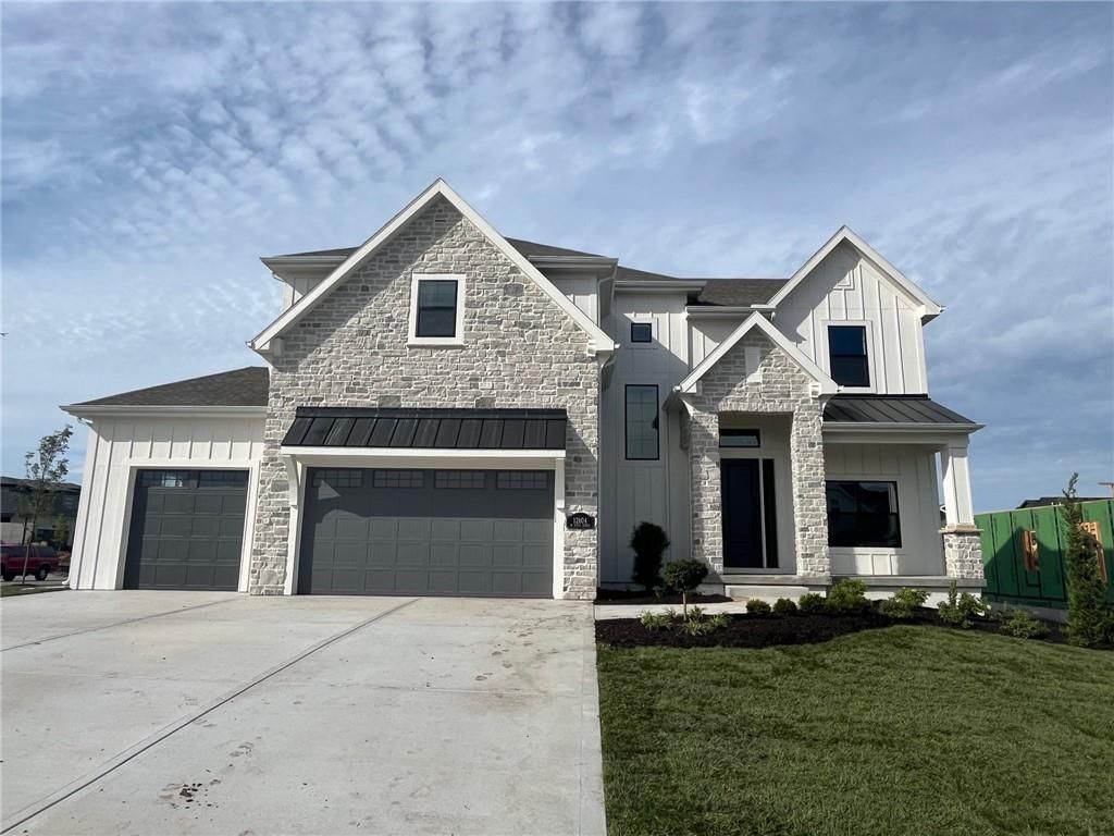 The beautiful Sullivan II 5 BEDROOM two story home by SAB on a perfect corner Lot 134 backing to a small green space with a walking trail ready for August MOVE IN. This floor plan has a space for everyone, with a 5th bedroom/office on the main level in addition to a formal dining room. It also includes a walk-in pantry, kitchen island, upgraded GE profile appliances with a 36" gas cooktop, beverage refrigerator in the coffee bar and breakfast room with access to the 14' x 12' covered deck. This home is built on a daylight lot with large windows ideal for a future basement finish of an additional 957 square feet. You'll love the upstairs primary bedroom with extra room and a unique bath with freestanding tub, double vanity sinks and walk in closet. The best part is a 4-CAR Tandem garage with expanded 2' width for extra storage. **This home is currently UNDER CONSTRUCTION and photos are from a previous model home** Century Farms neighborhood has a spectacular club house with a farmhouse twist ideal for neighborhood gatherings or private parties. It features a small prep area, fireplace, pub tables, reading loft and a fitness center. The large swimming pool includes a slide and is long enough for three competitive swim lanes. There are plenty of neighborhood activities with a fire pit, two pickleball courts and a basketball hoop, farm themed animal kids play area, wildflower walkways and a community garden. Century Farms is conveniently located near the brand new Bluhawk shopping center, Heritage Park, the Johnson County Trail system and the Overland Park Arboretum. Come join the fun in Century Farms, a unique one of a kind upscale new home community in Overland Park. BLUE VALLEY SCHOOLS