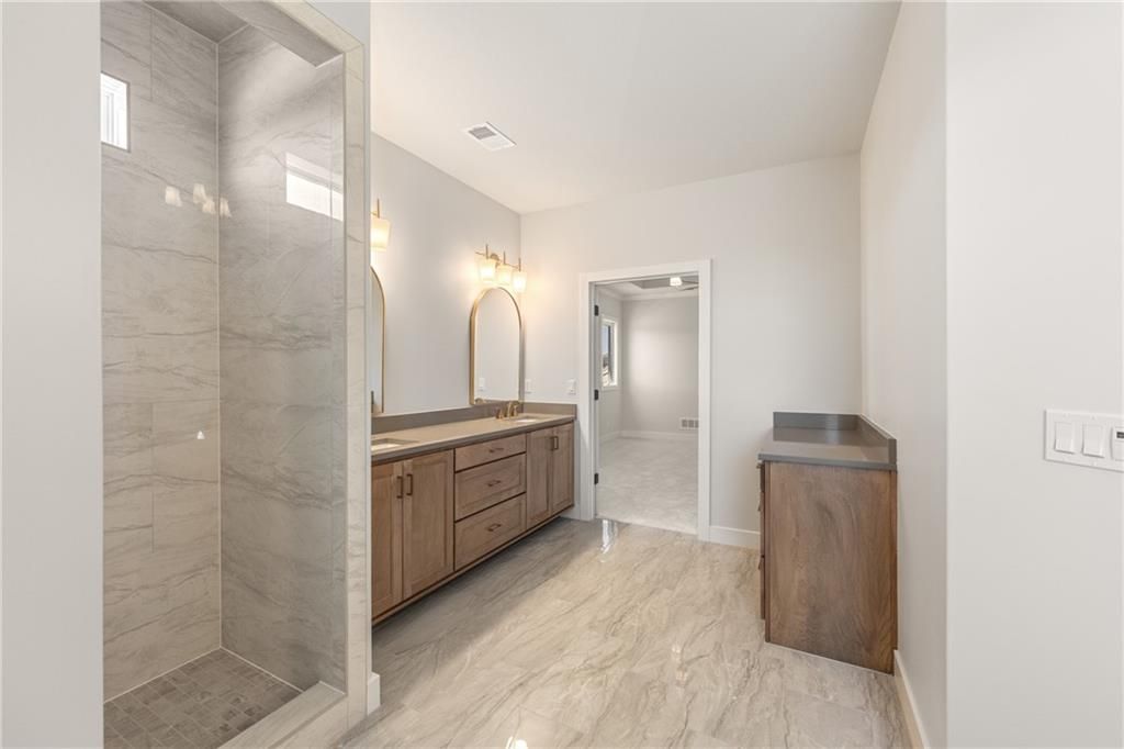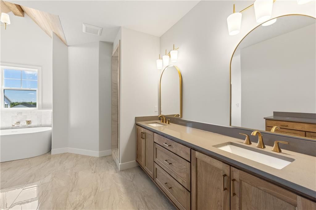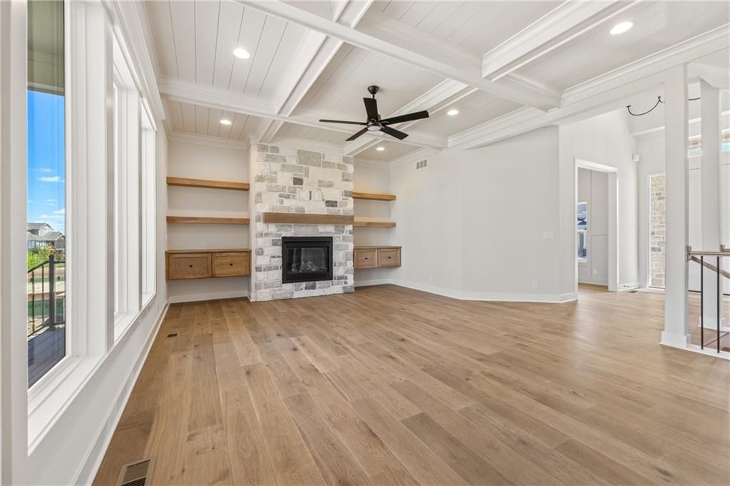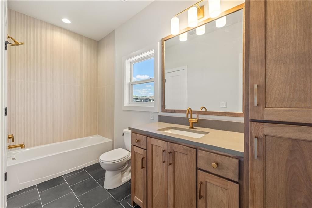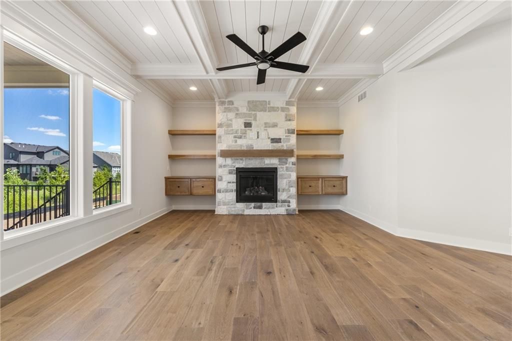 The beautiful Sullivan II 5 BEDROOM two story home by SAB on a perfect corner Lot 134 backing to a small green space with a walking trail ready for August MOVE IN. This floor plan has a space for everyone, with a 5th bedroom/office on the main level in addition to a formal dining room. It also includes a walk-in pantry, kitchen island, upgraded GE profile appliances with a 36" gas cooktop, beverage refrigerator in the coffee bar and breakfast room with access to the 14' x 12' covered deck. This home is built on a daylight lot with large windows ideal for a future basement finish of an additional 957 square feet. You'll love the upstairs primary bedroom with extra room and a unique bath with freestanding tub, double vanity sinks and walk in closet. The best part is a 4-CAR Tandem garage with expanded 2' width for extra storage. **This home is currently UNDER CONSTRUCTION and photos are from a previous model home** Century Farms neighborhood has a spectacular club house with a farmhouse twist ideal for neighborhood gatherings or private parties. It features a small prep area, fireplace, pub tables, reading loft and a fitness center. The large swimming pool includes a slide and is long enough for three competitive swim lanes. There are plenty of neighborhood activities with a fire pit, two pickleball courts and a basketball hoop, farm themed animal kids play area, wildflower walkways and a community garden. Century Farms is conveniently located near the brand new Bluhawk shopping center, Heritage Park, the Johnson County Trail system and the Overland Park Arboretum. Come join the fun in Century Farms, a unique one of a kind upscale new home community in Overland Park. BLUE VALLEY SCHOOLS