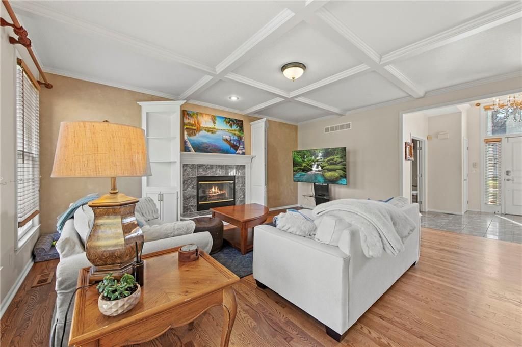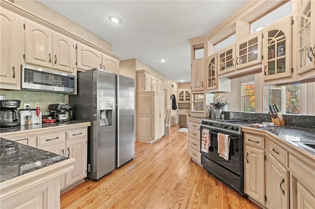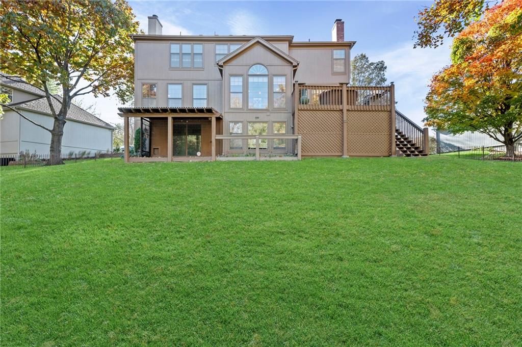 Blue Valley North living that's private, polished, and built to last. This Cherry Creek home stands out immediately with its stone-stucco-brick exterior, 50-year Grand Manor roof, and a level driveway that frames the curb appeal perfectly. The entire lot is wrapped in wrought-iron fencing, providing privacy, security, and a clean, upscale look from every angle. Step inside, and the scale opens up fast. Three finished levels and over 4,500 sq ft of usable space, capped by a true walkout basement custom-finished for both everyday living and entertaining. Two fireplaces keep things warm and grounded, while a custom dog room with its own fenced access makes this one instantly feel like home for every family member. The heart of the house hits the mark: A kitchen loaded with granite counters and floors, stainless steel appliances, a downdraft cooktop, and more prep space than you'll know what to do with. It's flanked by the great room on one side and the hearth room on the other, so conversations, cooking, and lounging stay connected without crowding each other. Upstairs, the primary suite delivers size and function, featuring a full sitting room, dual oversized walk-in closets, and natural light that showcases every corner. The formal dining room brings character with custom inlaid hardwoods and European chandeliers that elevate the space. Outside, the lot is the difference-maker: significant, private, and designed for real use. The playground set stays (tree swings included), and the maintenance-free composite deck provides a huge covered storage area underneath - rare, practical, and incredibly useful. This one offers the full package! Location, privacy, square footage, and smart upgrades throughout. Homes in Blue Valley North don't hit this combination very often.
