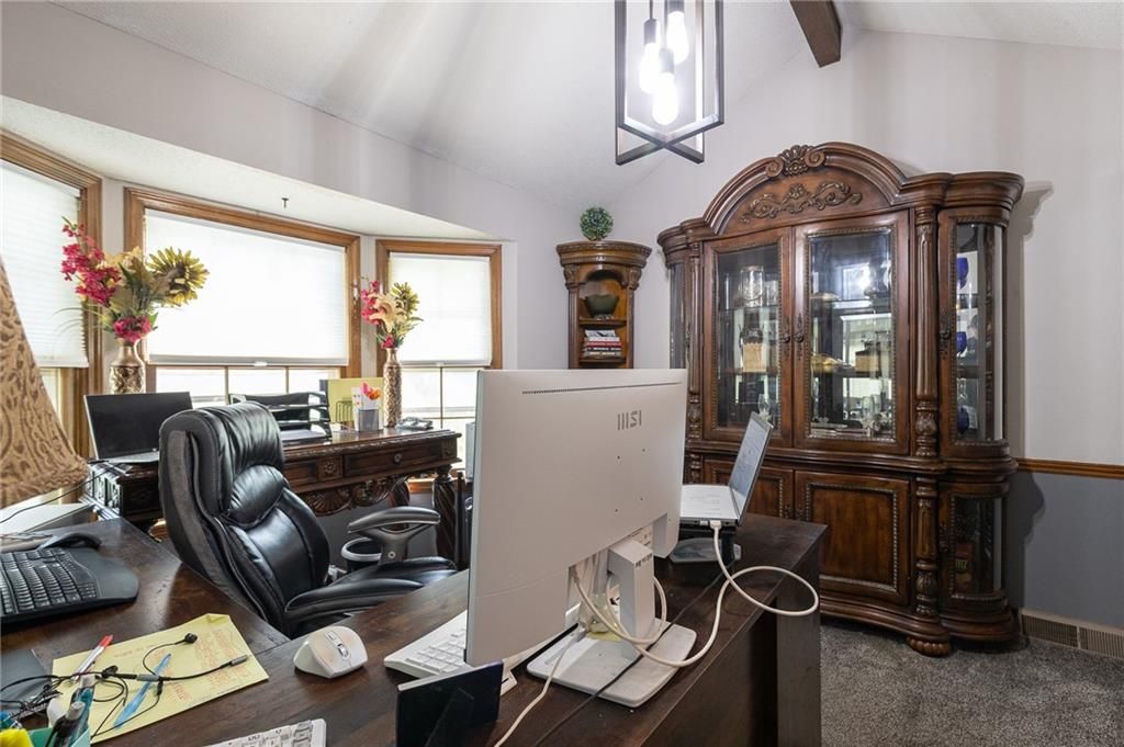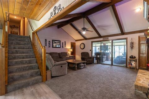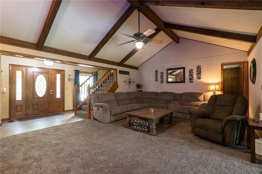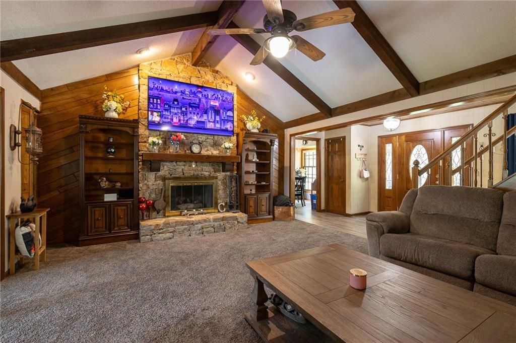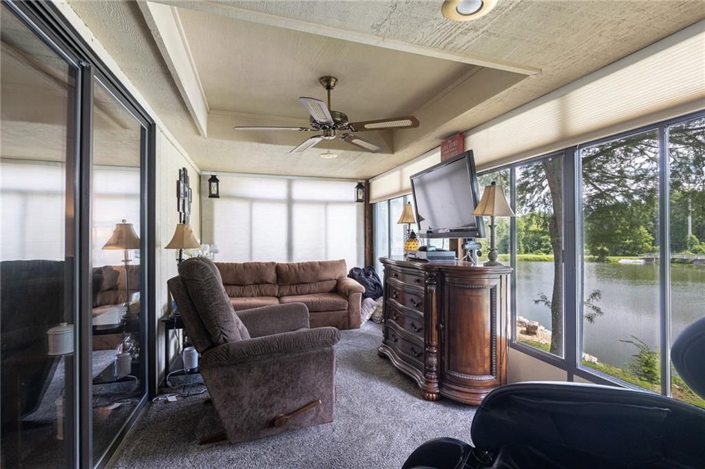 MUST SEE HOME that is in the desirable Glen Lake Subdivision. Come sit and enjoy the tranquil views year round from this lake front home which boasts both an enclosed sunroom and covered patio. Vaulted ceiling with wood beams in the great room along with gorgeous stone fireplace. Generous bedroom sizes and oversized garage (2nd bay is 28ft deep), plus low maintenance exterior with vinyl siding and roof is only 3 years old. 4th bedroom that can be easily used as a family room, along with 3rd full bath is in the basement. Additional enclosed storage room on back side of house.