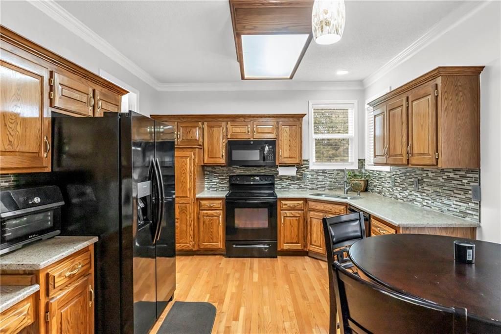 Beautifully updated home in the desirable Blue Valley School District! This spacious 4-bedroom, 4-bath property features new interior paint and brand new carpet throughout, offering a fresh and move-in ready feel. Located in the sought-after Parkwood Hills neighborhood, this home offers the perfect blend of comfort, style, and functionality. The main level showcases an inviting open layout with spacious living and dining areas, abundant natural light, and a cozy wood-burning fireplace. The kitchen provides generous cabinet space, a large breakfast area, and easy access to the newly updated back patio - ideal for outdoor dining or entertaining. Upstairs, you'll find four spacious bedrooms including a primary suite with a private bath and walk-in closet. The finished basement offers additional living space - perfect for a recreation room, home office, or gym. Set on a large, fenced lot (approx. 0.4 acres), the backyard offers privacy and plenty of room to play, garden, or relax. A 2-car garage and quiet location near parks, shopping, and major highways complete this exceptional home.