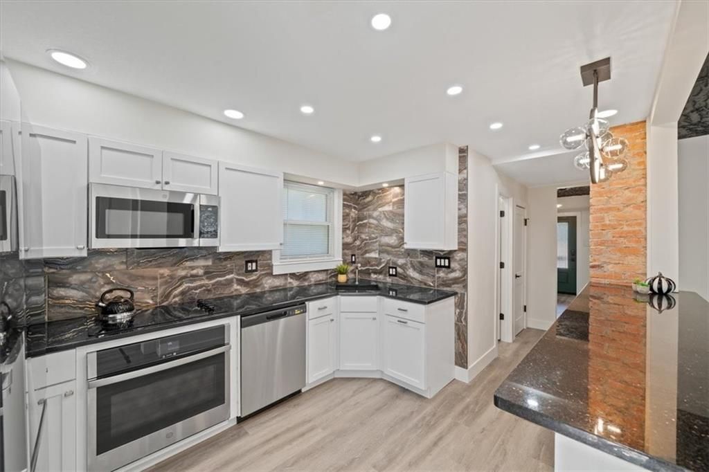 Welcome to this thoughtfully updated Midtown home, just minutes from the Country Club Plaza, KU Med, Downtown and 39th St. District - placing the best of Kansas City at your doorstep. With a new roof and modern upgrades throughout, it's move-in ready with both comfort and style in mind. Upon stepping inside, you are welcomed into the inviting living area anchored by a showstopping entertainment wall equipped with a Wi-Fi enabled, remote-controlled electric fireplace encased in black shiplap. The open flow leads into the grandiose kitchen, where striking Black Galaxy granite counters paired with gold infused backsplash compliment functionality and add flair. Upstairs, the light filled bedrooms are designed for comfort. The spa-like bathroom is a highlight, featuring a free-standing bathtub that offers the perfect retreat at the end of the day. In the basement, you'll find laundry conveniently tucked away along with plenty of storage and flexible space to fit your needs. Venture outdoors and this home truly stands out. Enjoy a brand-new deck in the back for gatherings, a welcoming front porch option, and a rare double lot complete with garage. The large, private backyard provides exceptional space and privacy - something not often found in this area. Residents also enjoy access to green community gardens, lovingly maintained by neighbors. All appliances will stay with the home. This carefully curated home with an unbeatable proximity to some of the city's most popular areas, is ready for its next chapter.