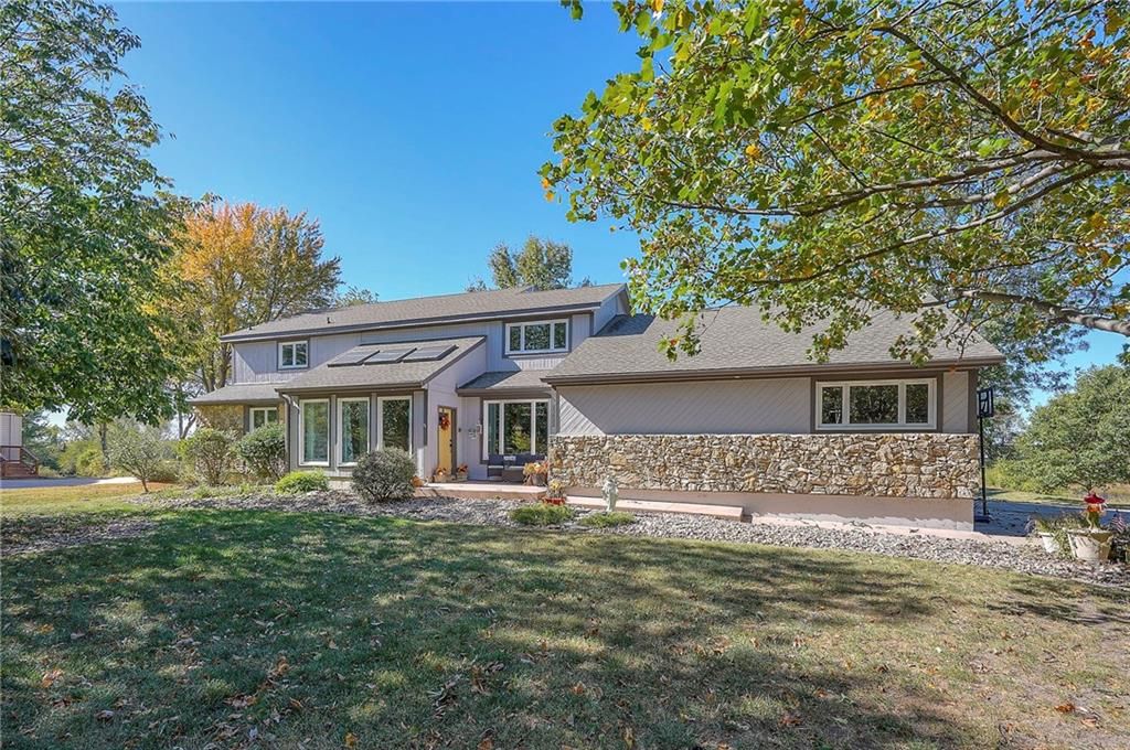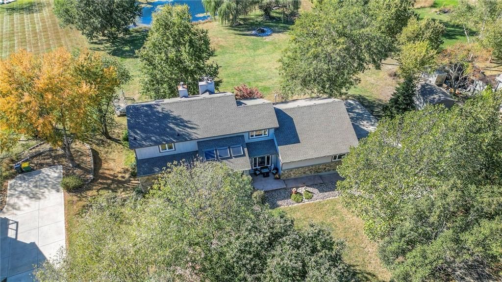Discover this truly special home situated on 2.4 scenic acres with a private pond, 3-car garage, and no HOA! Enjoy the feeling of a daily getaway with spacious, open-concept living areas perfect for entertaining. Thoughtfully designed with bedrooms on all three levels - main, upper, and lower - this home offers flexibility for any lifestyle. A rare find in Overland Park!