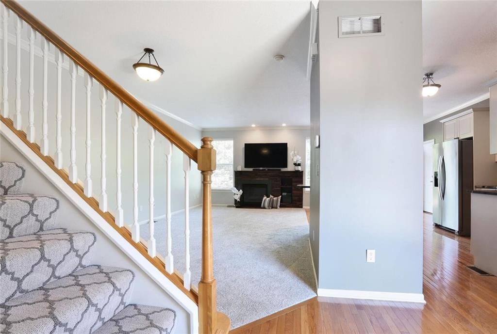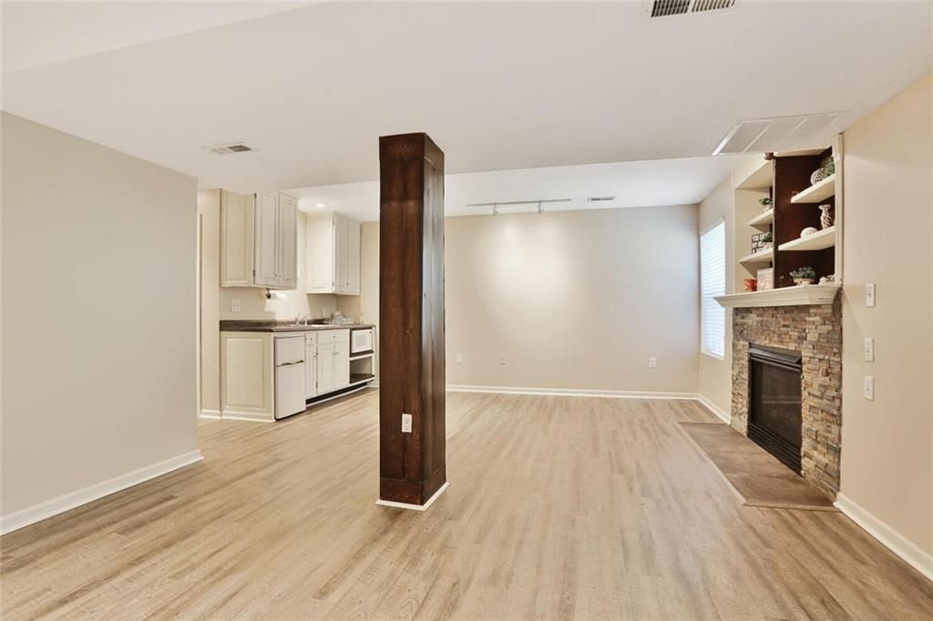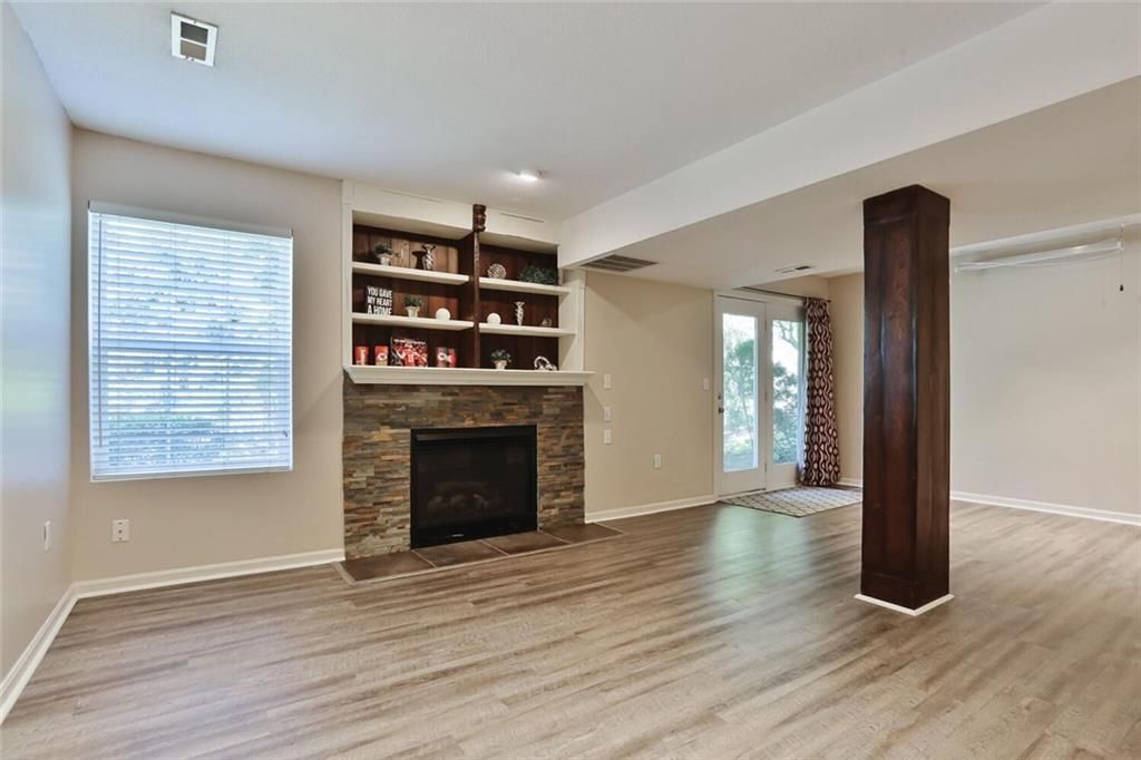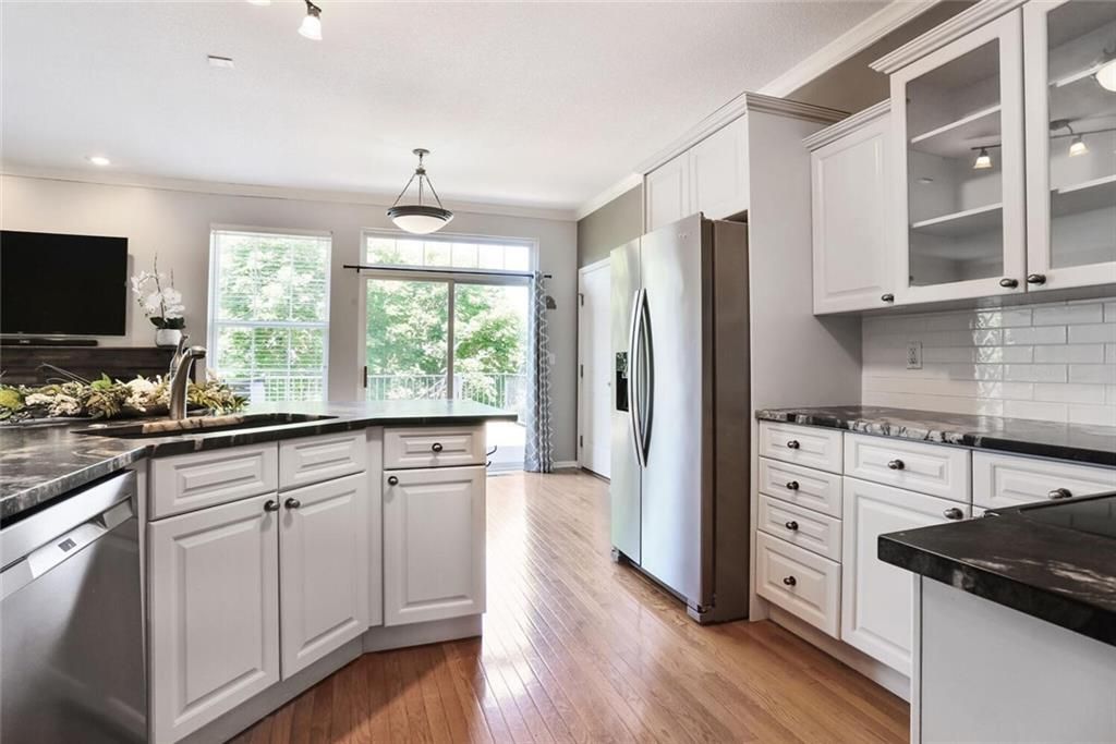 Maintenance-Provided Perfection Overlooking the Pond! This beautifully maintained Two-story home delivers the best of both worlds - spacious living & low-maintenance convenience. Nestled in a quiet, friendly community featuring a pool, clubhouse, walking trails & green space, all exterior maintenance, lawn care & snow removal are covered, so you can focus on enjoying life! The Main Floor offers True Oak Hardwood Floors, a Great Room w/ 9' ceilings, crown molding, gas fireplace w/ stacked wood surround, built-ins & open flow to the Dining Area & Eat-In Kitchen. Step out to the Composite Deck w/ aluminum railings & a gate to stairs that lead down to green space & pond views - your own peaceful escape! The Eat-In Kitchen is loaded w/ upgrades: painted cabinets, double glass-front cabinet, ceramic tile backsplash, upgraded granite countertops, pantry, Blanco composite sink, pull-out trash bin & newer Stainless Steel appliances - including refrigerator, dishwasher, stove & built-in microwave. Upstairs, the spacious Primary Bedroom features a vaulted ceiling, Sitting Area, large Walk-In Closet w/ built-in drawers & a luxurious Primary Bathroom w/ quartz double vanity, corner soaking tub, walk-in shower & designer ceramic tile. Two additional Bedrooms share a Full Hall Bath, & Laundry Room is located upstairs for convenience. The Finished Walkout Lower Level impresses w/ a large Family Room, second gas fireplace w/ stacked stone surround, Built-In Bookcase, and full Wet Bar w/ upper/lower cabinets, undercounter microwave & fridge - perfect for entertaining! A Flex Space is ideal for an office, additional guest space or hobby room. Covered Patio, great storage, newer systems, & Front Entry Garage w/ insulated doors, openers, built-in shelving & drawers. Pride of ownership shines throughout - this one's a must-see!