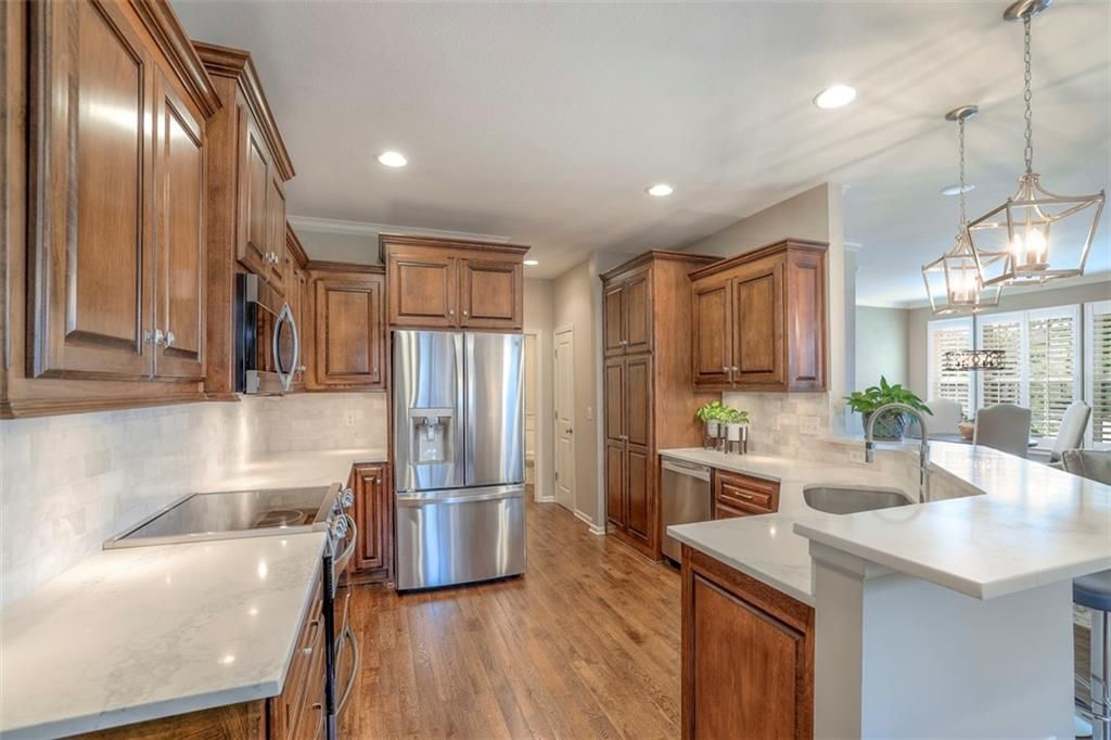 ***DESIGNER PERFECT HOME***Over $125K in remodel & upgrades!Prepare to be smitten.Endless list of NEW!!Beautiful NEW kitchen cabinets with soft close drawers,quartz countertops & marble backsplash. All new appliances including new refrigerator,stove,microwave, dishwasher& washer/dryer---it all stays!! Stunning NEW stacked stone fireplace & mantel. Lovely refinished hardwoods on the main level. Plantation shutters & 2.5"' blinds & all new lighting throughout NEW paint everywhere.The two-story entry dazzles with "Wainscot Paneling" Additional living space in the newly finished lower level--perfect for movie watching and working out. Travel upstairs to the well appointed bedrooms & completely renovated hall & master bath with designer finishes & glass shower doors.NEW AC & furnace with transferable warranty. The backyard is a private oasis with new deck & privacy fence.Coveted cul de sac location with PRIVATE DRIVEWAY & spacious garage. Pool & clubhouse with party & exercise rooms within walking distance.Also enjoy access to walking trails & Lake in the 400 acre Nature Preserve. It's like living full time at the Country Club! There's not another townhouse in the Wilderness that compares.Awesome location. Blue Valley Schools. If you appreciate quality & fine finishes this home & maintenance provided community is for you. Note: HOA rules do not allow leasing of homes.