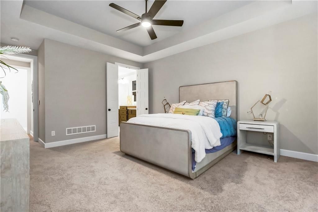 Move-in ready! Welcome to 16388 S Brougham Dr, a stunning home in the Stonebridge Trails neighborhood, featuring a main-level primary bedroom and a flexible office/flex space, perfect for work, study, or hobbies. The open floor plan is filled with natural light, flowing seamlessly from the kitchen to the living and dining areas - ideal for entertaining or everyday family life. Upstairs offers additional bedrooms and bathrooms for family or guests. Stonebridge Trails residents enjoy exceptional community amenities: paved walking trails, playgrounds, sports courts, volleyball areas, two clubhouses (one with a gym), and four zero-entry pools, including a Junior-Olympic pool with a slide and fountain. The neighborhood is designed for active living and convenient access to local schools and parks. This home is just ~0.5 miles from Prairie Creek Elementary, ~1 mile from Woodland Spring Middle School, and ~3.5 miles from Spring Hill High School. Outdoor recreation is close by, with Heritage Park ~2-3 miles away, offering trails, athletic fields, a lake, picnic areas, disc golf, and a dog park. Shopping and dining are also nearby along the 119th Street Corridor (~4 miles). Combining functional living spaces, modern design, and access to top amenities, this move-in ready home is perfect for today's lifestyle. Square footage and taxes are estimated, buyer/buyer agent to verify.