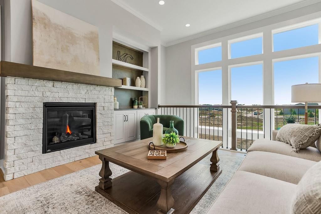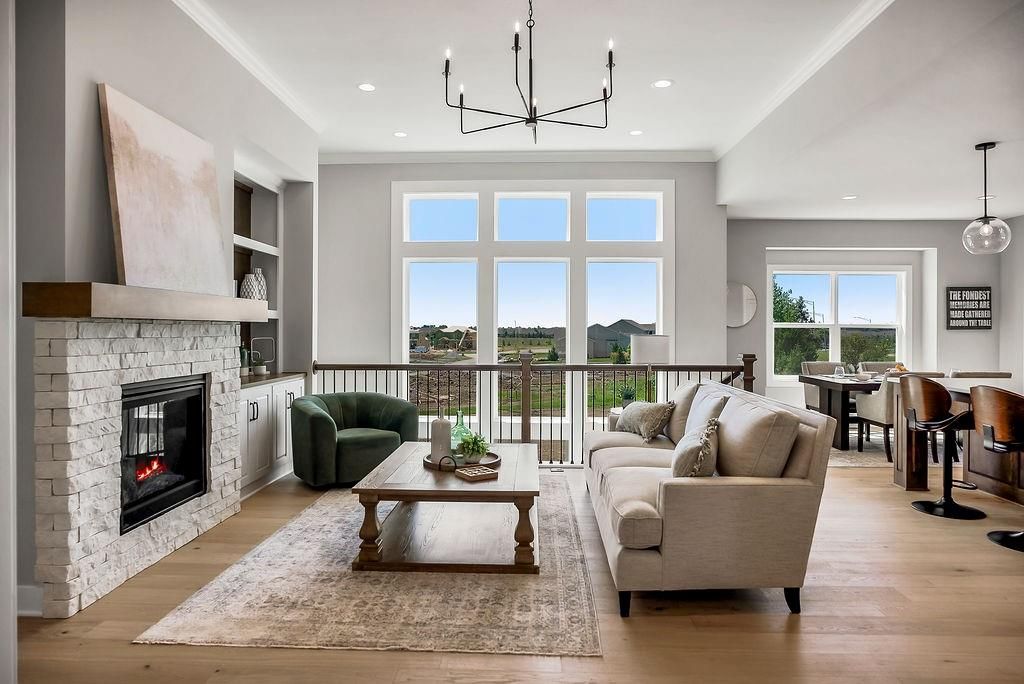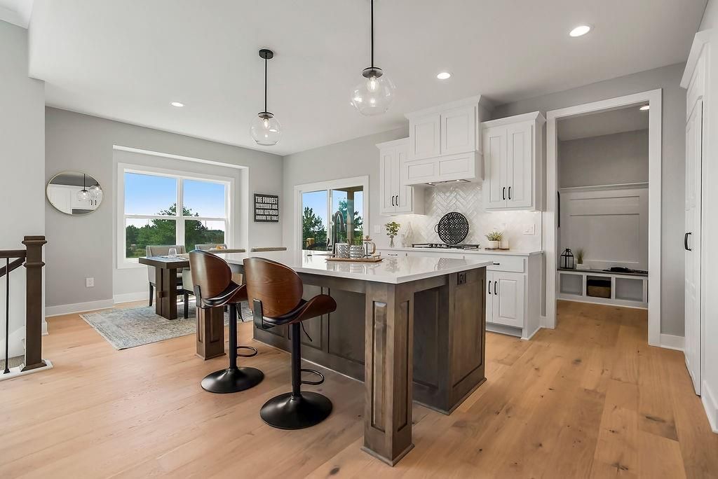Move-in ready, the Hampton IV offers a spacious open layout with high ceilings, generous room sizes, and large rear windows that fill the home with natural light. The great room flows seamlessly into the kitchen and breakfast nook, creating an inviting space for everyday living. The lower level is ideal for entertaining, featuring a large recreational room that can accommodate media, games, or gatherings. Residents of Stonebridge Trails enjoy four zero-entry pools, two clubhouses with fitness centers, sport courts, playgrounds, and walking trails. The home is approximately 0.3 mi from Heritage Park, a 1,234-acre recreational hub with a lake, dog park, athletic fields, disc golf course, softball, football, and soccer fields, plus an 18-hole golf course with driving range. Nearby schools include Prairie Creek Elementary (~0.6 mi), Woodland Spring Middle (~1.0 mi), and Spring Hill High (~5.5 mi). Daily conveniences are close by, including Natural Grocers (~4.2 mi), Price Chopper (~4.5 mi), and local coffee spots (~1-1.2 mi). Taxes, square footage, and room dimensions are estimated - Buyer or Buyer Agent to verify.