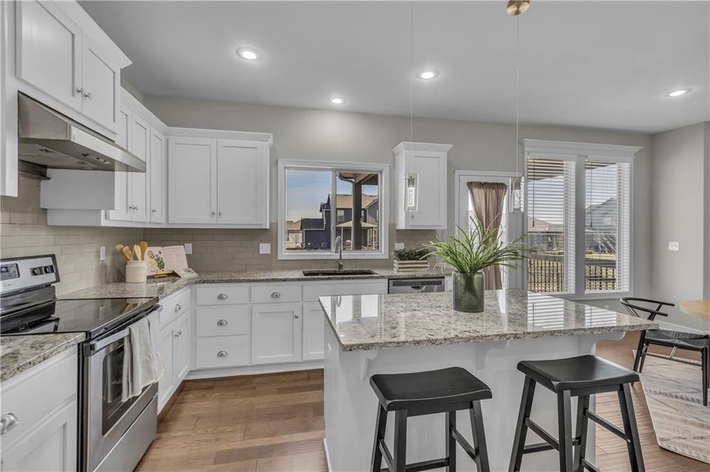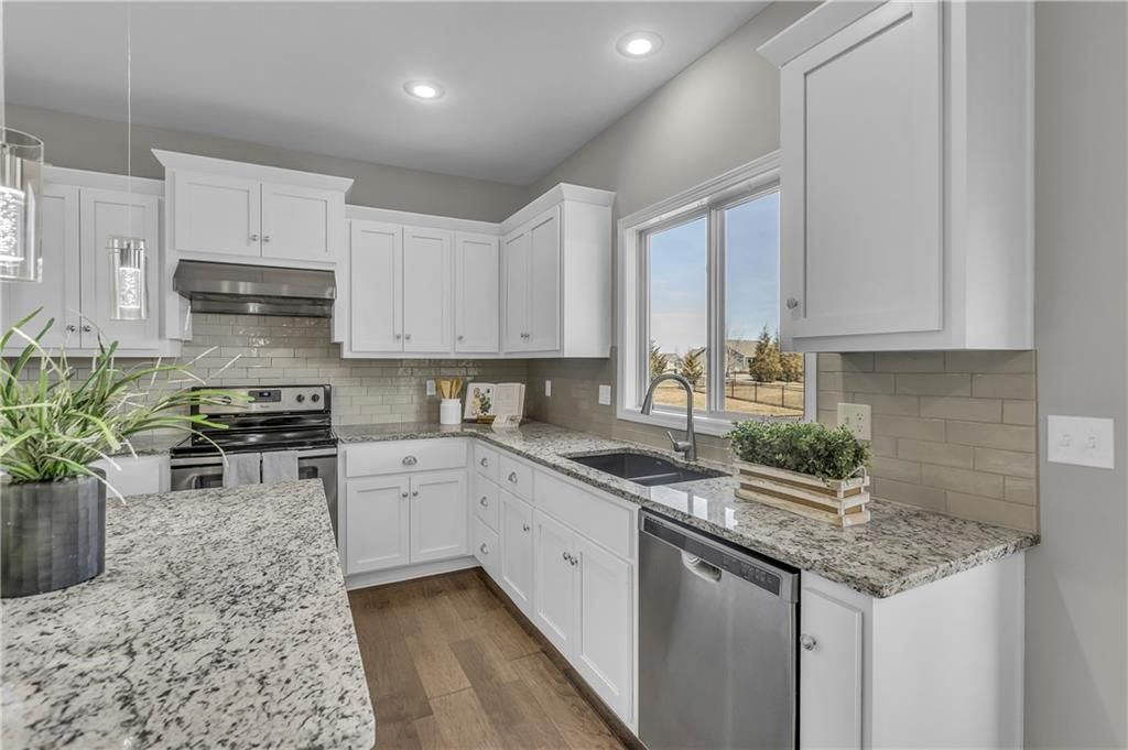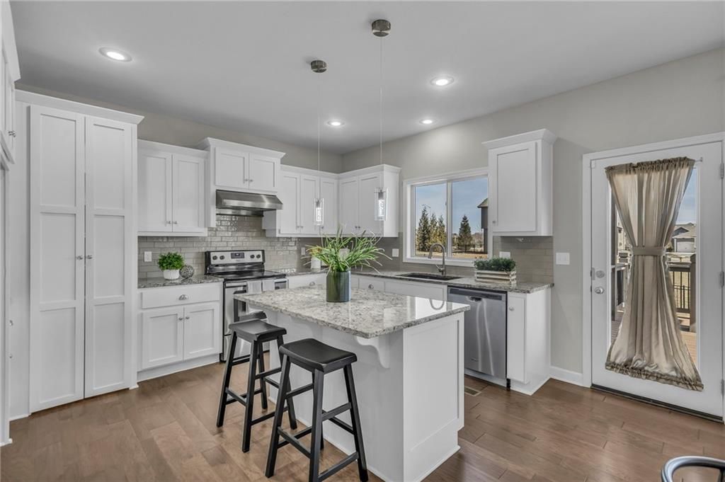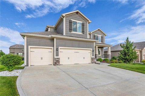IMMACULATE, LIKE NEW HOME ON A PRIME CUL-DE-SAC LOT! $20,000 PRICE ADJUSTMENT! Thousands in instant equity!! Welcome to this stunning 2-story former model home, offering 5 spacious bedrooms, 3.5 bathrooms & a FINISHED daylight basement - All at an unbeatable price! This home exudes curb appeal with its charming front porch and fresh landscaping. Step inside to a beautiful entryway with soaring vaulted ceilings, hardwood floors & an open seamless flow between the formal dining room & cozy living space. The updated kitchen features a generous walk in pantry & stylish finishes perfect for entertaining or everyday living. The thoughtfully designed floor plan offers both function and elegance with lots of natural light throughout. The finished basement adds valuable living space and another full bathroom and bedroom - perfect for a home office or guest suite. The covered composite deck overlooking the large backyard will be perfect for hosting friends and family this summer! Boulder Creek offers resort style living. Whether you are cooling off at the pool, working on your golf game at the putting green or playing pickleball & meeting new friends at the clubhouse and outdoor grill - There's always something to do! Close to award winning schools, grocery stores and restaurants, south JOCO is the new hotspot in town. Homes of this caliber, in this location & this price point do not last long. Schedule your showing today!!