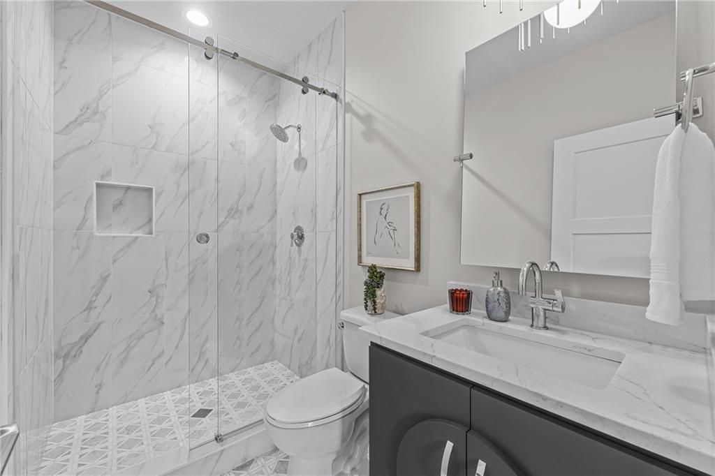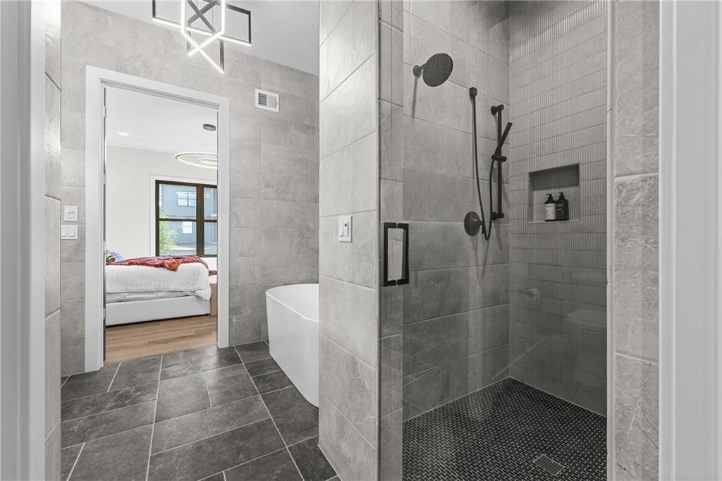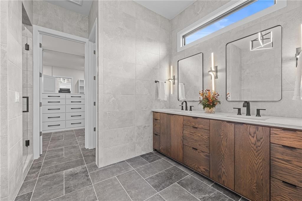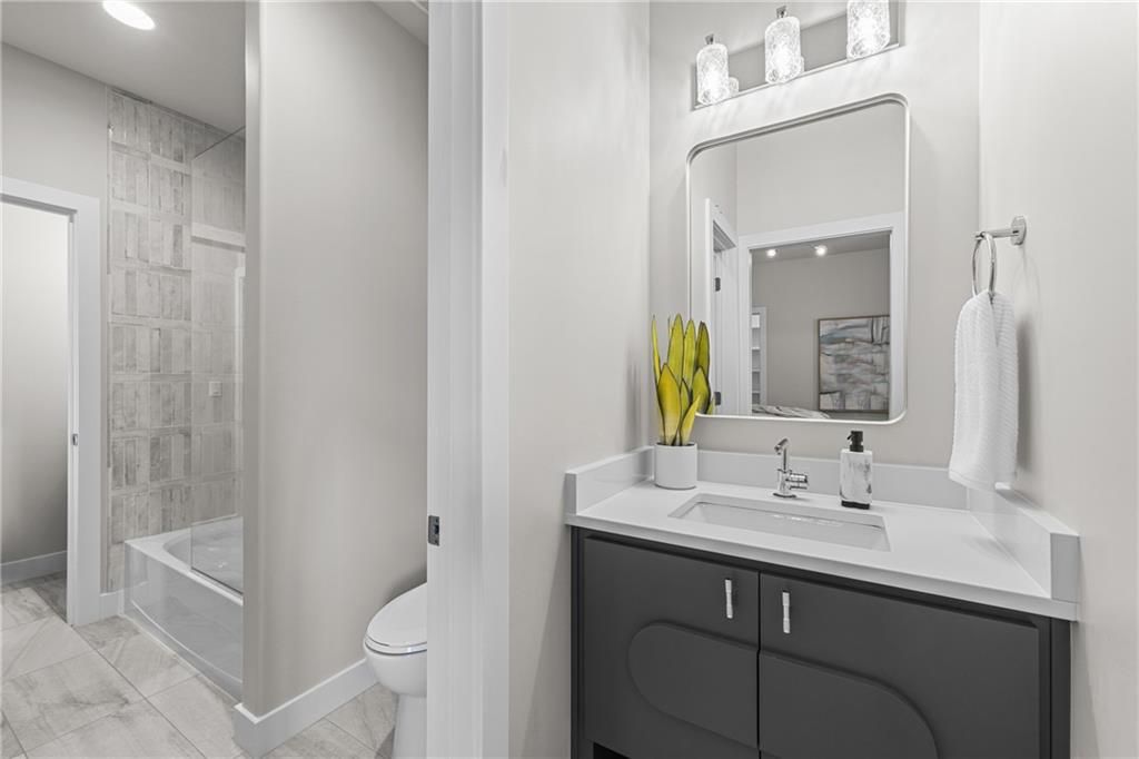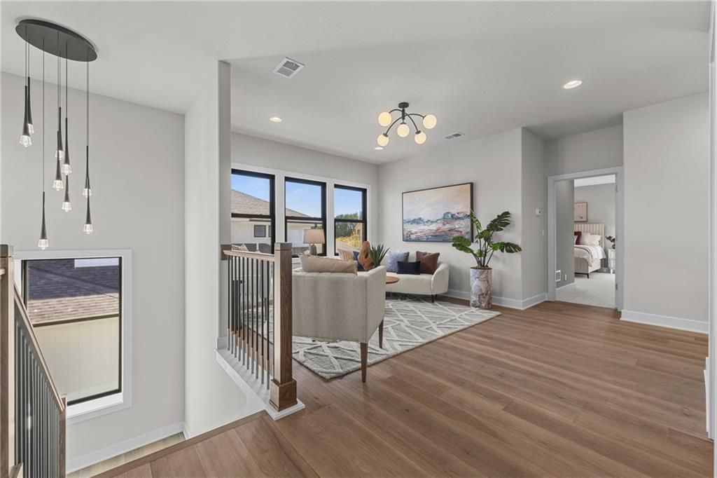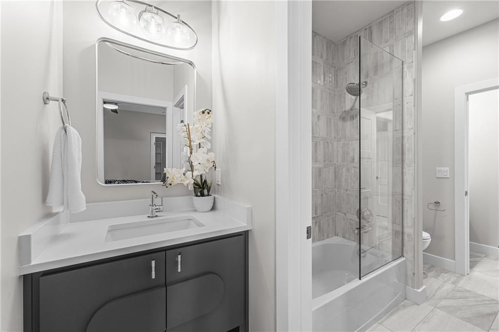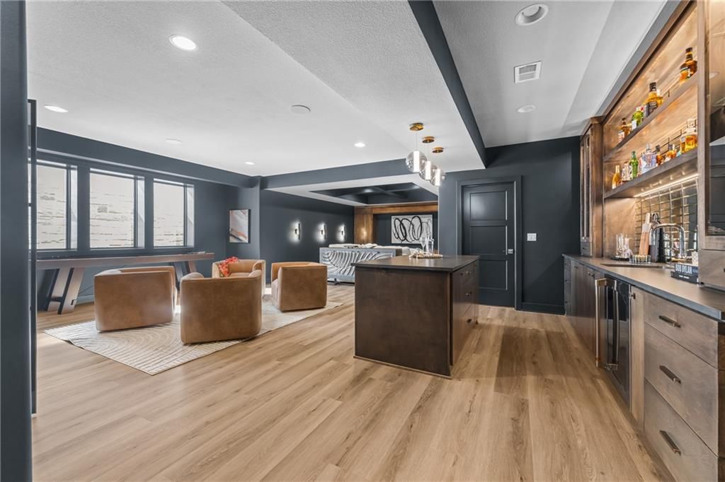 MODEL HOME is now FOR SALE! The 1.5 Story Birmingham II plan by SAB HOMES is a spectacular new 5 BEDROOM plan with an impressive mix of modern sophistication loaded with premium new upgrades. This home offers 3 levels of finished space at just over 4600 square feet. As you enter, this plan features a soaring two story ceiling, fantastic new modern lighting, two story great room with floor to ceiling tile fireplace with floating hearth and black linear fireplace. The spacious dining room showcases a sophisticated accent wall with mirrors and floating shelves and a double slider door to access the covered 17' x 10' tiled patio. The butlers pantry has an extra MOEN sink, water bottle filler and glass swing door to Chef's kitchen with premium CAFE appliances and DEKTON waterfall island and backsplash. Explore the main level primary bedroom with tile headboard accent wall with mirrored walnut side trim, spacious bath with freestanding tub and large closet. There are four bedrooms up plus a loft space at the landing ideal for upstairs game room or craft room. There is a space for everyone in this home with three floors and 5 bedrooms. The lower level offers 1339 sf of additional finished space ideal for entertaining or exercising with a whiskey wall bar with mirrored tiles and floating shelves, fitness room with double glass doors and Finnleo Sauna, full bath, and theater room. Don't miss the extra features including a guest bath backlit rock wall, extended 3rd car bump out for extra storage, split 3 car garage, real stone trim, large front porch, tiled front porch and patio TV wall. Come join the fun in Century Farms, a unique one of a kind upscale new home community in Overland Park. Century Farms has a spectacular clubhouse with a fitness center, resort style swimming pool, two pickle-ball courts, kids play area and community garden. It's located near the new Bluhawk shopping center, Heritage Park and the OP Arboretum. BLUE VALLEY SCHOOLS