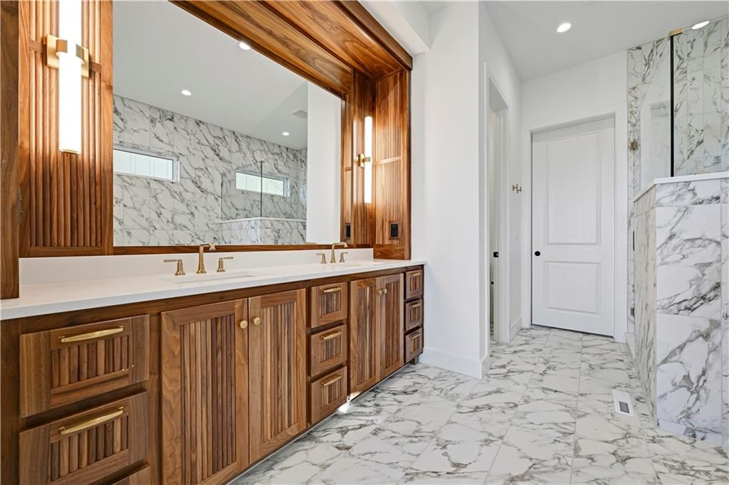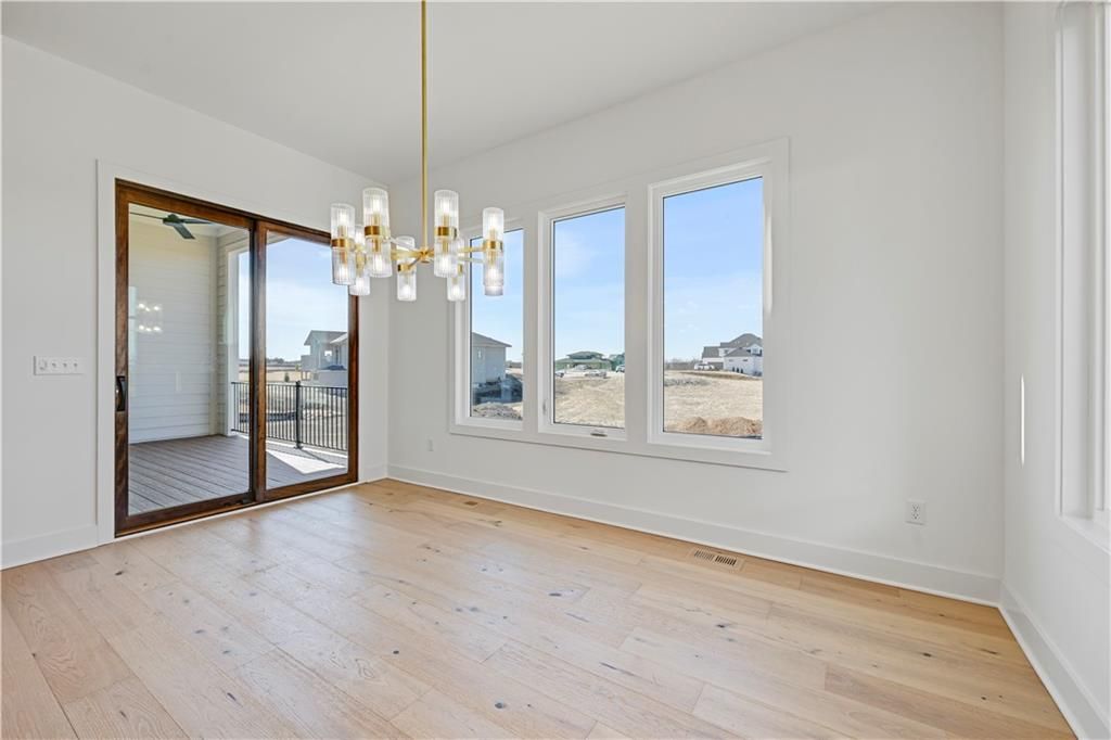 The beautiful Roanoke from Roeser Homes! This lovely 1.5 story home features an open floor plan with 4beds all with en suite baths, a half bath on the main level, and high-end finishes throughout. Luxurious details include dual heads in the master bath shower, quartz or granite tops and soft close cabinets in the kitchen, upgraded insulation for comfort and efficiency. The basement has 9' foundation walls and is stubbed for a 3/4 bath for convenience and comfort should you choose to finish the lower level. 1st floor Master has a large walk in closet. This home is nearly complete. Enjoy the summer in your new home! Located in The Sanctuary, one of Matt Adam's newest subdivisions. This Home is in the Blue Valley school district.