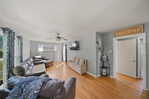 Welcome to this adorable and well-maintained ranch home, full of charm and comfort. Step inside to a bright living room with hardwood floors, a well-appointed kitchen with all appliances included, two bedrooms, and a full bath on the main level. Hardwood flooring extends through the living room, hall, and both bedrooms, while the kitchen and bath feature tile flooring. The second level offers a third bedroom for additional living space. Walk out from the living room to a large patio with pergola and string lighting, perfect for relaxing evenings or entertaining guests. The clean, unfinished basement provides ample storage and includes access to the single-car garage. Exterior highlights include a fully fenced yard with a privacy gate and a resurfaced driveway.