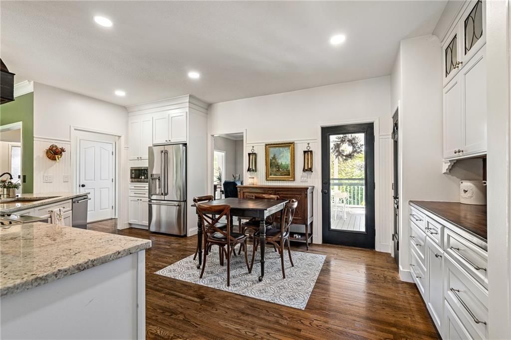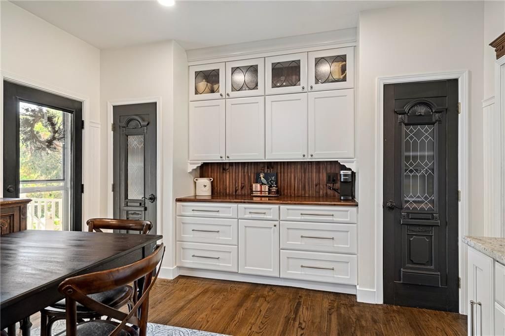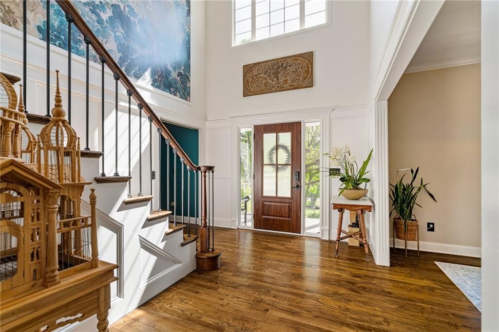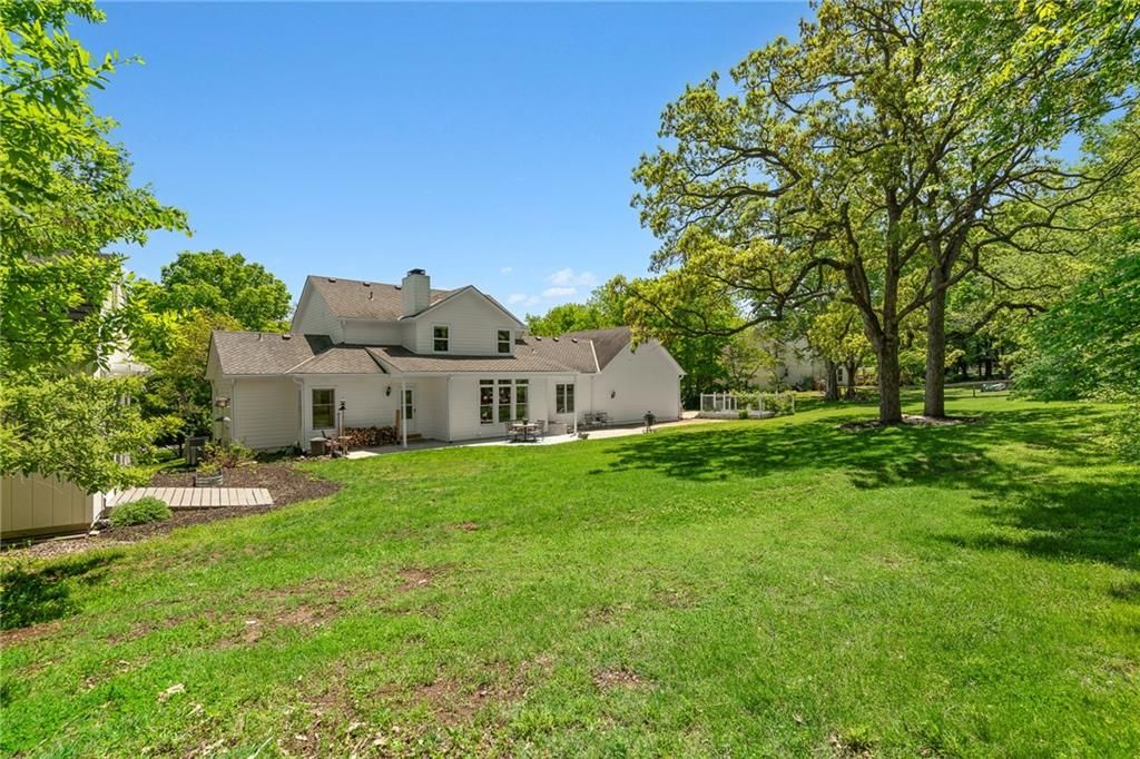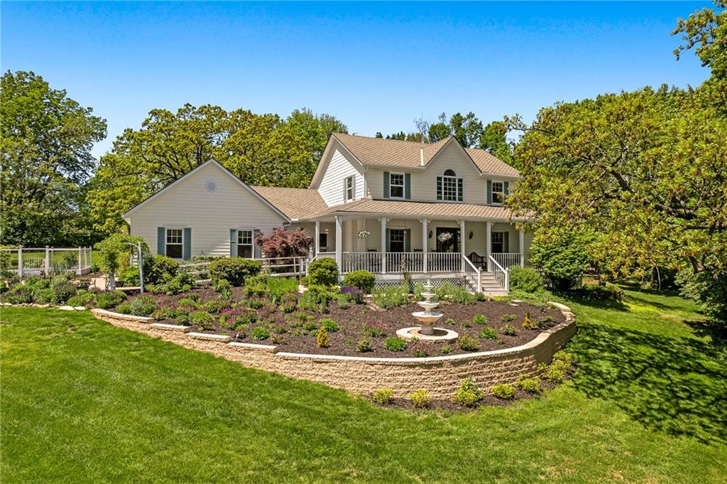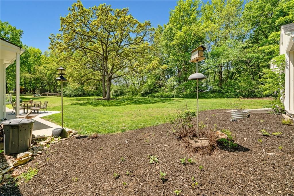 A truly one-of-a-kind opportunity in the heart of Blue Valley Schools - this beautifully updated home sits on 1.66 private, park-like acres in a serene and quiet neighborhood, offering the perfect blend of peace, privacy, and proximity to everyday amenities. From the moment you arrive, you'll feel the care and attention that has gone into every inch of this lovingly maintained 4-bedroom, 3.5-bath home, with a non-conforming 5th bedroom in the spacious finished lower level. The remodeled kitchen and laundry room are both stylish and highly functional, featuring tasteful finishes and thoughtful details. Every bathroom in the home has been updated, adding to the overall comfort and appeal. Step onto the covered wraparound front porch and take in the meticulously landscaped grounds - a true haven for bird watchers and garden lovers alike. No detail has been overlooked: new 6" gutters and downspouts, James Hardie cement board siding, upper-level and garage windows, heat pumps, hot water heater, sump pump with battery backup, interior paint (excluding garage), new garage door, and more. Outdoors, you'll find fruit trees, a fountain, a fenced garden, and a charming shed - all combining to create a truly magical setting. The main level is wheelchair accessible, and the lower level offers additional living space, a wet bar, full bath, and an epoxy-floored workshop, perfect for hobbies or home projects. Epoxy floors also continue into the garage, elevating the utility space. Tucked away on blacktop with the feel of a private retreat, yet just minutes from top-rated schools, hospitals, restaurants, and shopping - this is more than a home, it's a lifestyle. Properties like this rarely come available.