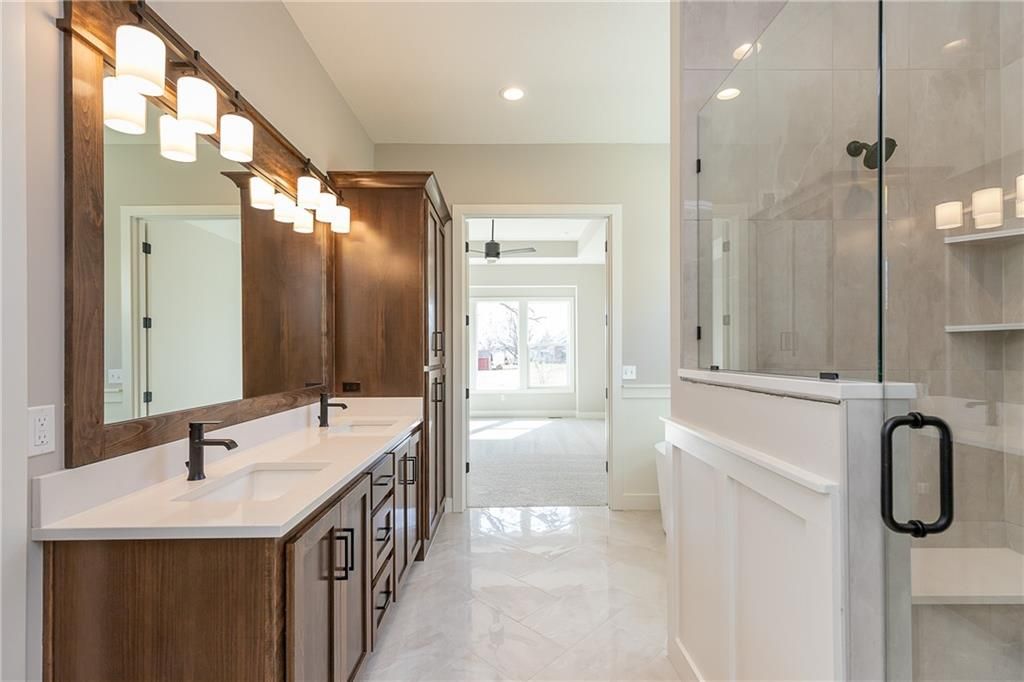 The Windsor plan by Inspired Homes sits on Lot 71 in the highly desired Southern Meadows community and showcases exceptional modern curb appeal paired with an equally stunning interior that is designed and tailored for comfort at every stage of life. From the moment you step inside, an abundance of windows fills the home with natural light, creating a bright and welcoming atmosphere. A versatile front bedroom provides exceptional flexibility - ideal for a home office, guest suite, or in-law retreat. The great room features tall ceilings and an elegant fireplace framed by beautiful built-ins, delivering a warm yet sophisticated focal point. The chef-inspired kitchen includes an oversized island, extensive custom cabinetry, and a convenient prep kitchen that elevates everyday living and entertaining. The private primary suite is thoughtfully positioned and offers a spa-like bath with freestanding tub and a spacious closet complete with rich wood shelving. The lower level expands your living space with a large rec room, wet bar, two additional bedrooms, and abundant storage - perfect for hosting and relaxing. This home boasts an impressive amount of square footage and sits on an oversized, level lot with fantastic views. An entertainer's dream inside and out. Estimated completion: March/April 2026.
