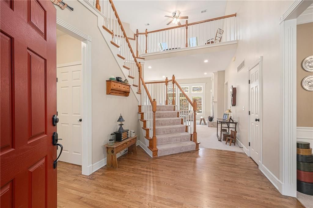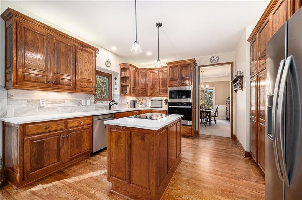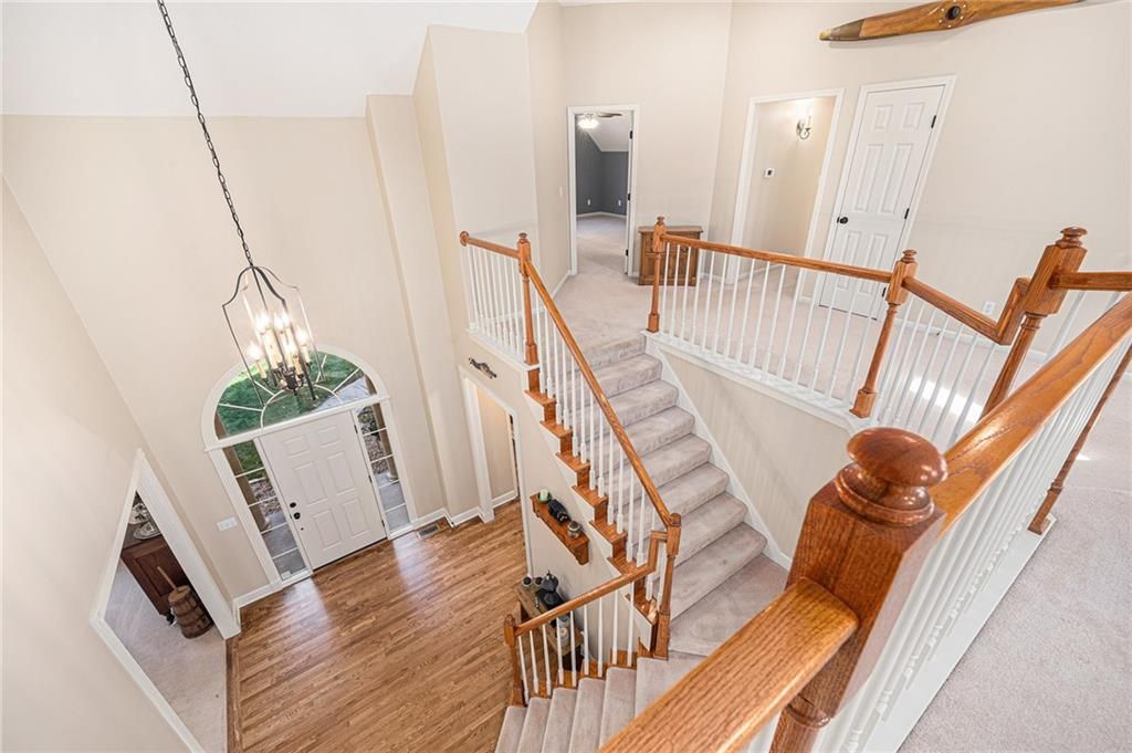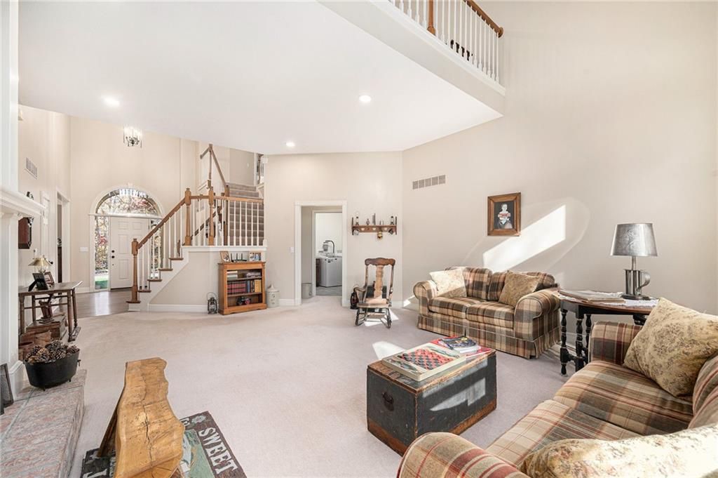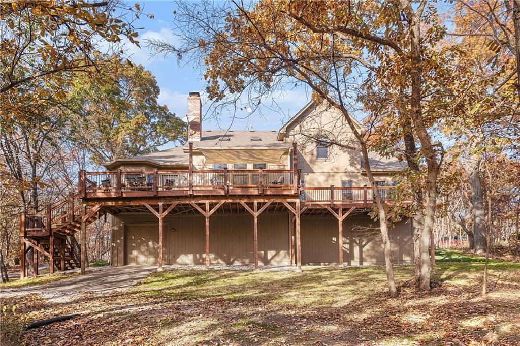 Discover this one-owner custom-built home nestled on 7.3 picturesque acres with a beautiful 1.5 acre shared pond and only 24 minutes from Lee's Summit. Featuring 4 bedrooms and 3.5 baths, this home is designed with both comfort and function in mind. The main floor features a spacious primary suite complete with a private sitting room, a well-appointed kitchen with quartz countertops, stainless steel appliances, hearth room, and Anderson windows that fill the home with natural light. Convenient main floor laundry adds ease to daily living. Upstairs, you'll find generous-sized secondary bedrooms along with a versatile loft space perfect for an office, playroom, or second living area. The unfinished basement, stubbed for a bath, provides endless opportunities for expansion. Outside, a 40x50 shop with two 12' doors, concrete floor, and electricity offers ideal space for hobbies, storage, or a small business. This property combines peaceful country living with modern amenities.