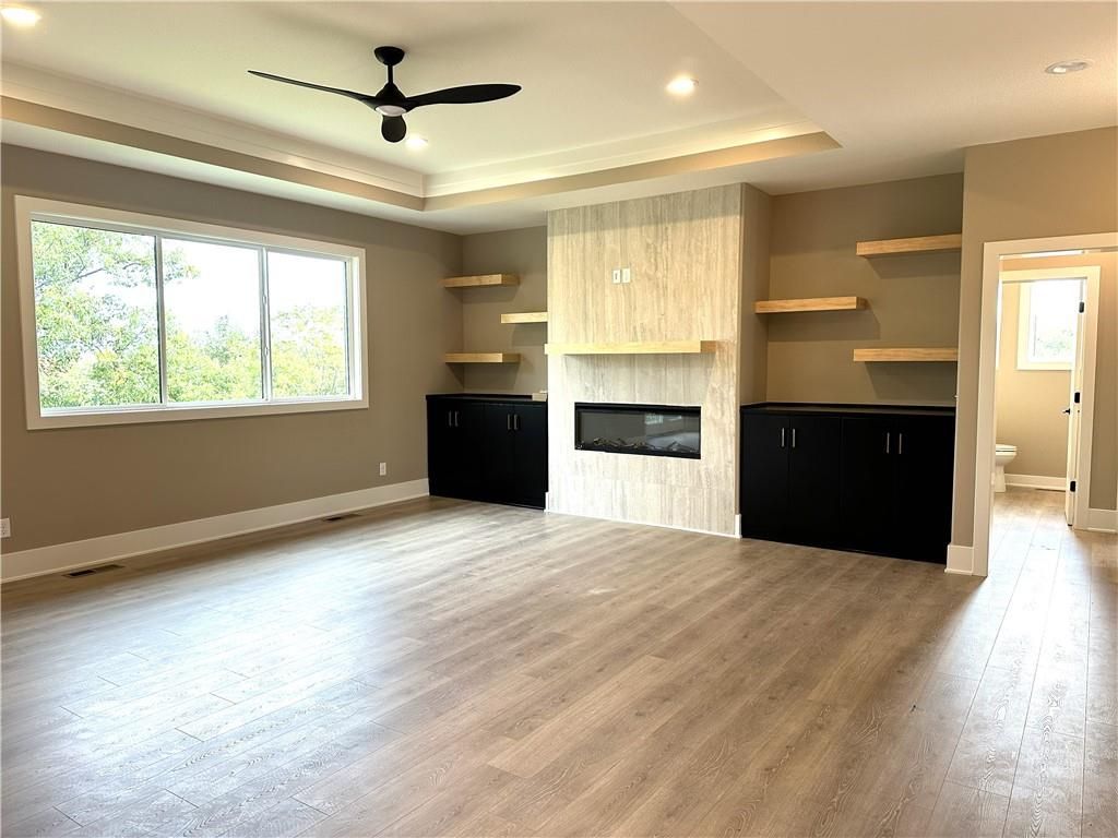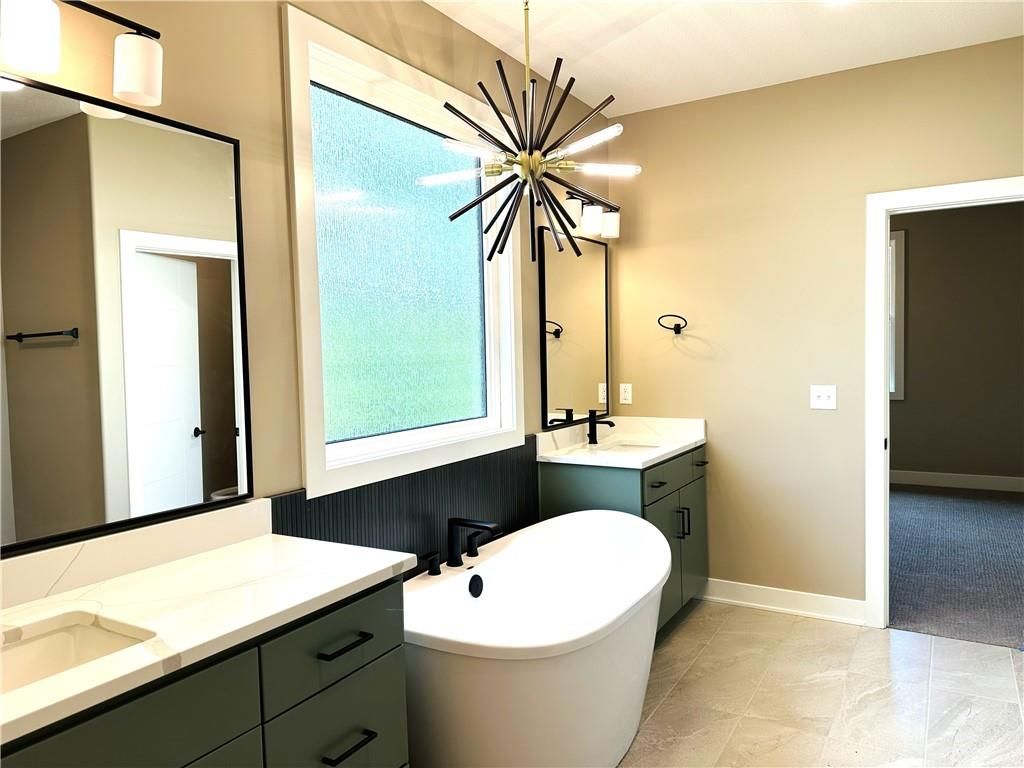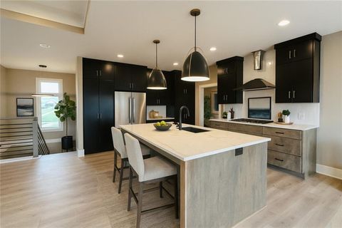 This contemporary ranch home truly checks all the boxes! Offering 4 spacious bedrooms - including 3 on the main level - this open-concept gem is both stylish and functional. Step into the stunning kitchen featuring custom Tricorn Black cabinetry, a striking vertically stacked Cutlass Picket white tile backsplash, and elegant Calacatta Classique quartz countertops throughout the home. The centerpiece - A Tidal wood-stained island that beautifully anchors the kitchen and seamlessly connects to the living room. In the living room, you'll be drawn to the Invictus Rigatto Ivory vertically stacked tile feature wall - another standout design element. Large windows frame serene views of the treed lot, offering a perfect blend of nature and luxury. Step outside to relax on your deck or lower-level porch, ideal for taking in the tranquil scenery. The finished walk-out lower level includes a 4th bedroom, full bath, and is stubbed for a wet bar. Two additional unfinished areas provide endless possibilities for customization - whether it's a 5th bedroom, a gym, office, or playroom lots of opportunities in the unfinished areas to add to your living space.