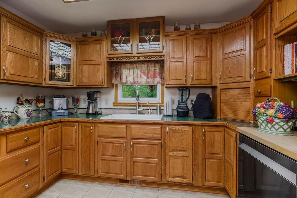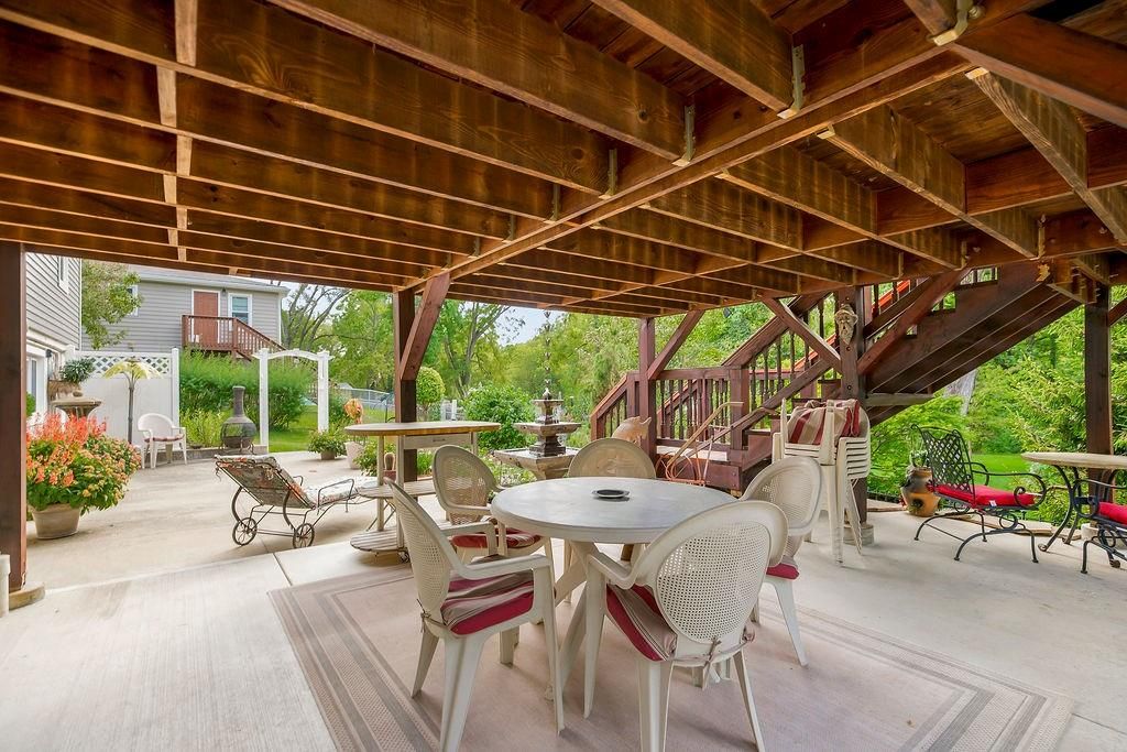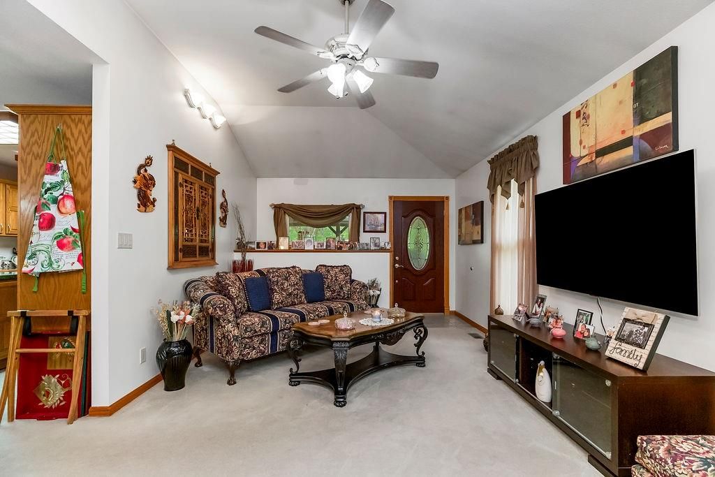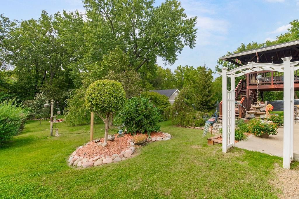 Discover your private retreat in this charming ranch home, perfectly situated on just under one meticulously maintained acre. This property offers an idyllic blend of serene outdoor living and comfortable, updated interiors. The main level boasts three cozy bedrooms and a full bathroom, while the finished basement provides a fourth nonconforming bedroom, a second full bathroom, a second living room and a safe room. You will want to step out onto the beautifully crafted covered deck to enjoy tranquil evenings and a perfect view of your picturesque backyard. If you prefer an open-air setting, a second back patio features a built-in fountain, adding a peaceful soundtrack to your relaxation. The expansive yard is a nature lover's dream, featuring a curated selection of hand-picked, ornate trees that provide stunning visual interest and shade and the ability to keep all of this well watered with your in ground sprinkler system and the multiple water hydrants placed around the yard. For your peace of mind and convenience, the property includes an invisible fence in both the front and back yard as well. The spacious detached garage is an enthusiast's dream, complete with its own water hydrant, electric panel, and a convenient RV hook-up. Enjoy modern comfort and efficiency with a brand-new roof, upgraded windows, and enhanced insulation throughout the home, ensuring a cozy and energy-efficient living experience. This home is packed with so many upgrades and unique features that it must be seen to be fully appreciated. Don't miss your chance to own this exceptional property!