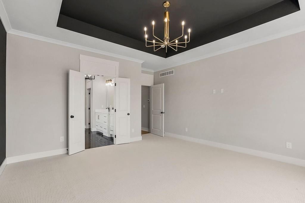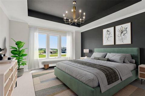 12-15 min to Overland Park Arboretum & Botanical Gardens 10-15 min to US-69 access at 179th 12-17 min to Jinkies! Coffee 11-14 min to Bluhawk shopping & Price Chopper Community clubhouse & pool on-site South-backing orientation with sunset views. Move-in-ready Avalon II by Pyramid Homes in Sundance Ridge - Archer's Landing offers a daylight 1.5-story plan on a cul-de-sac lot with covered patio. 12' ceilings span the great room and foyer with gas fireplace, #2 white oak hardwoods, and artistic trim. Gourmet kitchen features custom cabinetry, oversized island, granite counters, stainless appliances, tile backsplash, and walk-in pantry with window. Box-ceiling breakfast room opens to patio. Main-level primary suite includes spa bath with freestanding tub, dual-head tiled shower, SileStone vanities, and custom closet. Energy features include Low-E windows, foam & caulk seal, R-13/19 walls, R-49 attic, zoned HVAC with humidifier and dual thermostats, plus 50-gal water heater. Fully sodded yard with irrigation and community fitness center, parks, and planned pickleball courts.