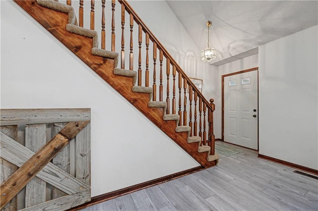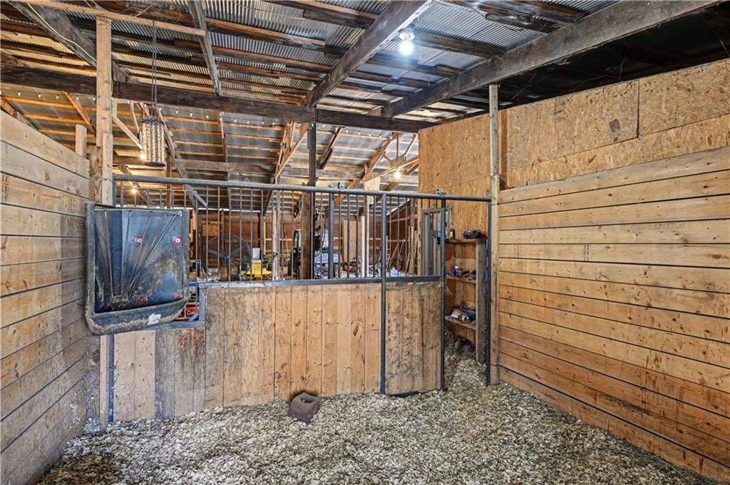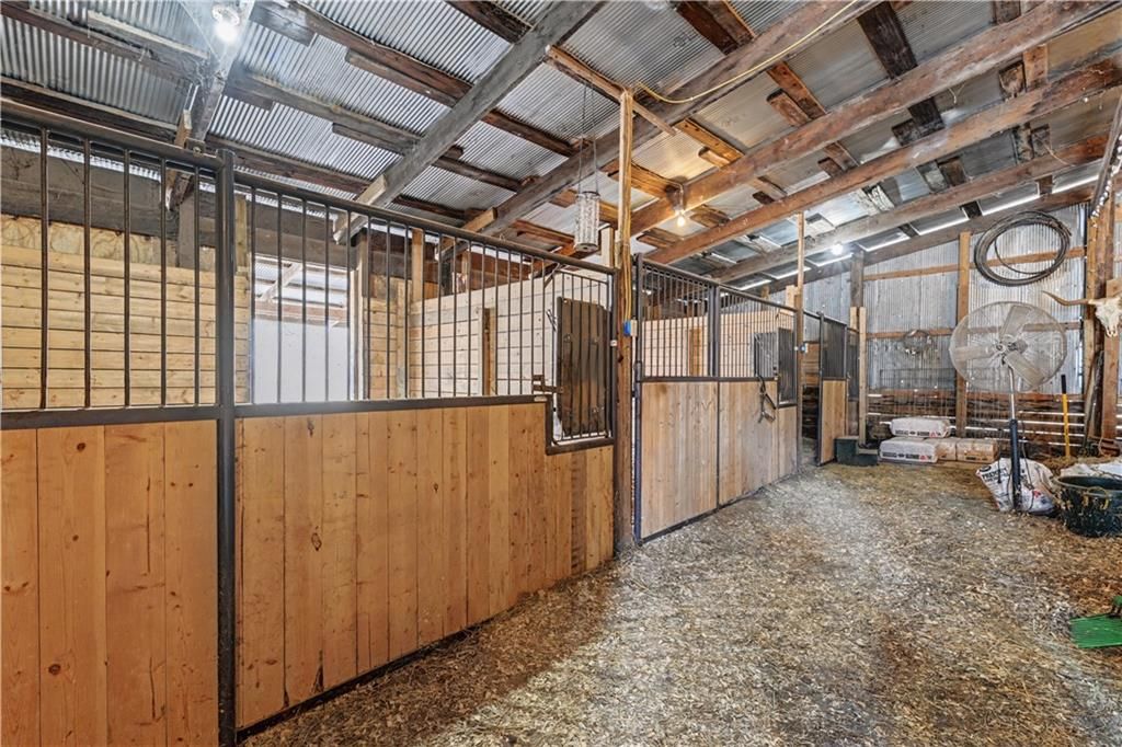 BRING THE HORSES or animals! Your own little farm near the city. This 3.79 treed acres with real pasture, a functional barn, and a well-maintained home just minutes from everyday conveniences. Major improvements include newer windows, roof, furnace, garage doors, and exterior siding. A 50' x 50' barn features three stalls, a 12' x 18' tack room, electricity, an auto-waterer, and hydrant. Pastureland is located on the east side of the creek, adjacent to the barn, with fencing already in place. The home continues to impress with a spacious great room featuring cathedral ceilings, a cozy stone fireplace, and new flooring. The light-filled kitchen offers an abundance of cabinetry, newer appliances, and wood floors. A new sliding door leads from the kitchen to the deck, overlooking mature trees that provide shade and privacy throughout the summer months. Enjoy main-level living with the primary bedroom on the main floor with a private full bath. An additional half bath on main level. Two additional bedrooms upstairs with third bath. The finished lower level is perfect for a rec room, gym, hobbies, or storage. The level backyard is perfect for everyday outdoor living. Located next to the Creekmoor Subdivision, this property delivers the best of both worlds - privacy, usable acreage, and convenience, with paved roads all the way to the home. Whether you're seeking a small farm, horse property, or simply room to breathe near the city, opportunities like this are rare.