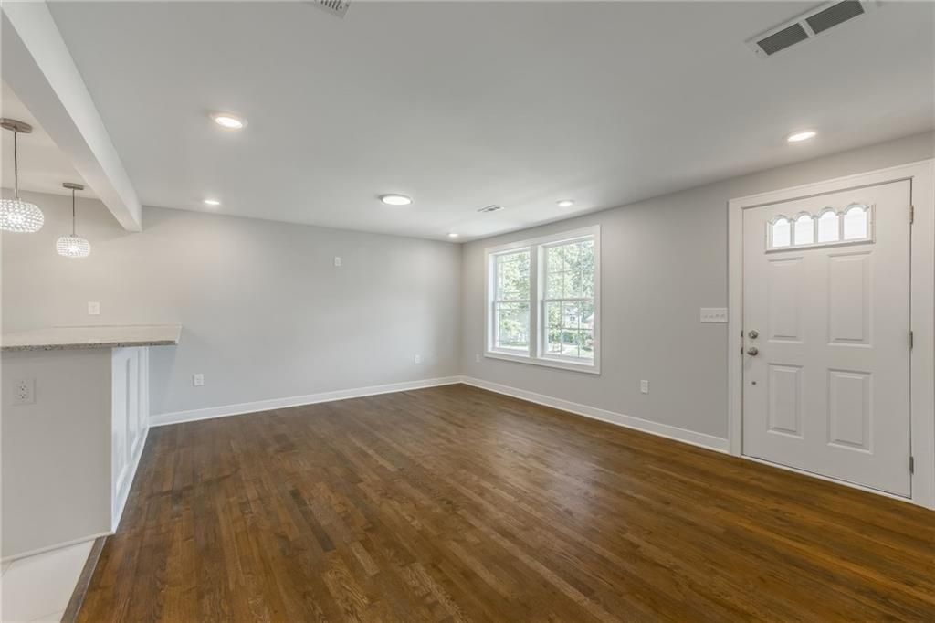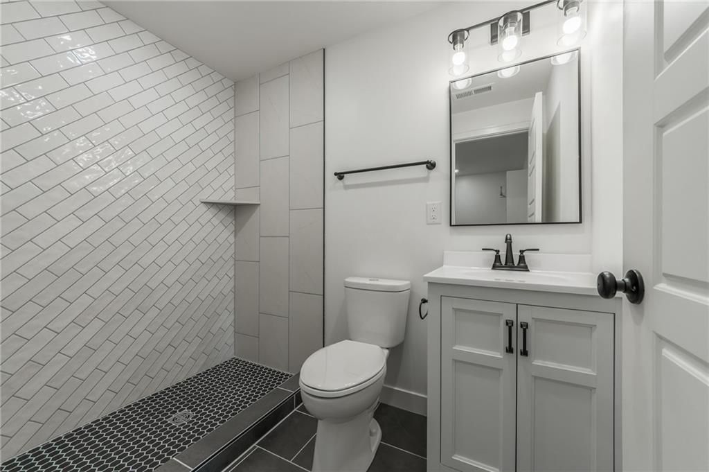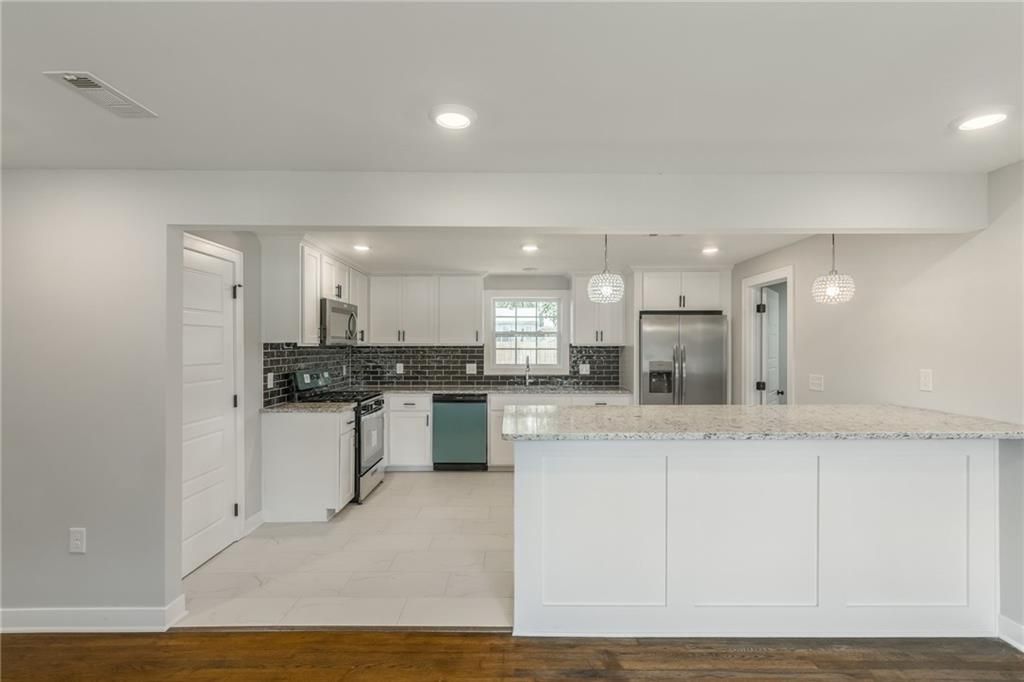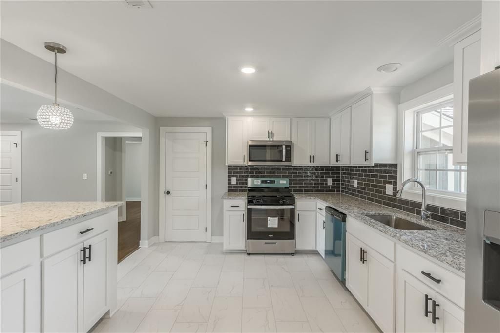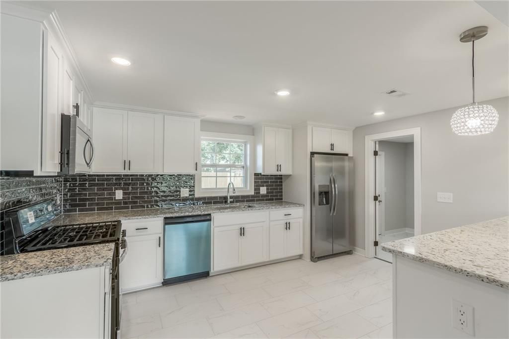 Complete remodel. Original sheetrock removed, all insulation replaced. New siding. New windows. Electrical and plumbing, both service lines and drains. Finish quality is very high spec! You have to see it to believe it. Master suite with walk-in closet. Hi grade porcelain tile backsplashes and surrounds in kitchen and baths. Covered front porch deck was added with like quality and specs, as well as rear deck. Large flat year yard ready for family fun with well built privacy fence. A rare offering in this price range.