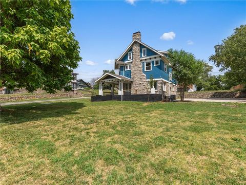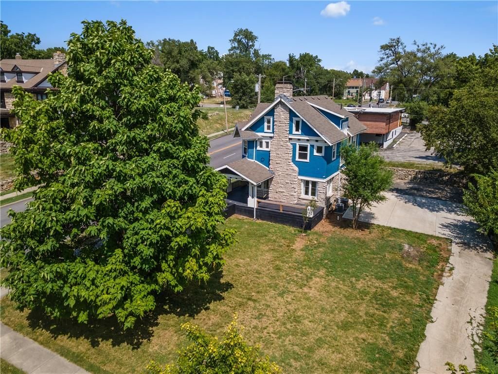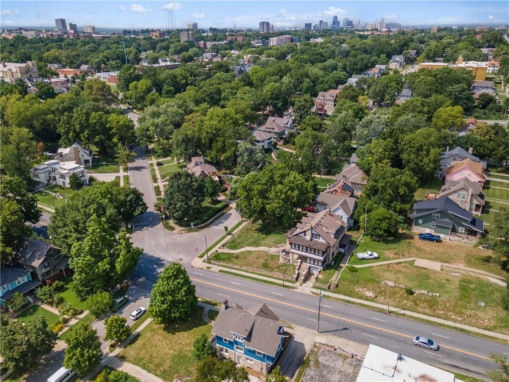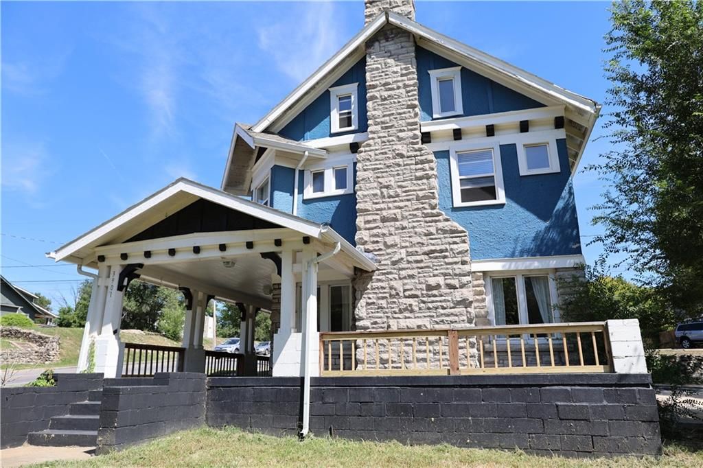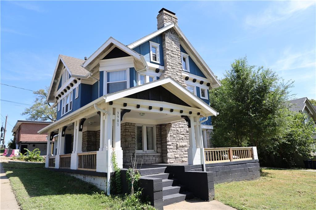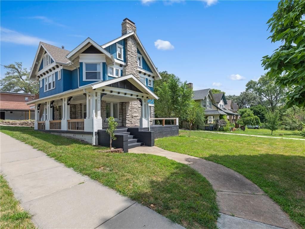 Step into the perfect blend of historic charm and modern comfort with this beautifully renovated early 1900s shirtwaist home. Set on a double lot with a brand-new wrap-around porch railing for privacy, this classic Kansas City treasure is move-in ready and waiting for you. Original charming hardwoods and staircase, complemented by new granite and marble tile, all-new windows (including a striking picture window in the stairwell), and updated light fixtures and recessed cans. This is a true three-story home with thoughtful spaces on every level. The second floor hosts a spacious main suite featuring a walk in closet, double vanity, giant soaking tub and spa-like waterfall shower and two additional bedrooms + shared bath, while the third floor offers a large guest suite with its own private bath - perfect for hosting, a home office, or converting into an income-producing space. The gourmet kitchen is a highlight, showcasing granite countertops, marble floors, stainless steel appliances, a deep soaking sink, brand-new cabinets with gliding drawers, updated hardware and a pantry. All four bathrooms shine with new vanities, tubs/showers, and designer tile. Two fireplaces with new marble facings (living room and main suite) add timeless character and warmth. TWO new A/C units, TWO new furnaces, a security system and architectural plans ready for your dream garage. A spacious wrap-around off-street parking slab adds convenience and privacy with a back door entrance. Perfectly situated in Midtown just minutes from downtown this house is ready to be a home.