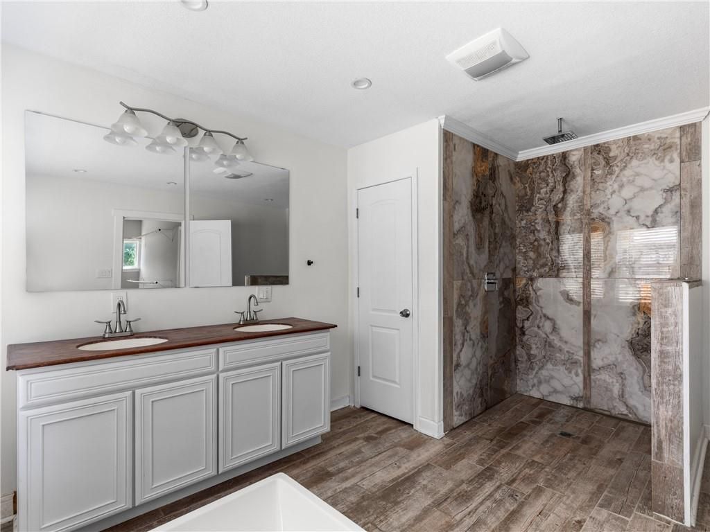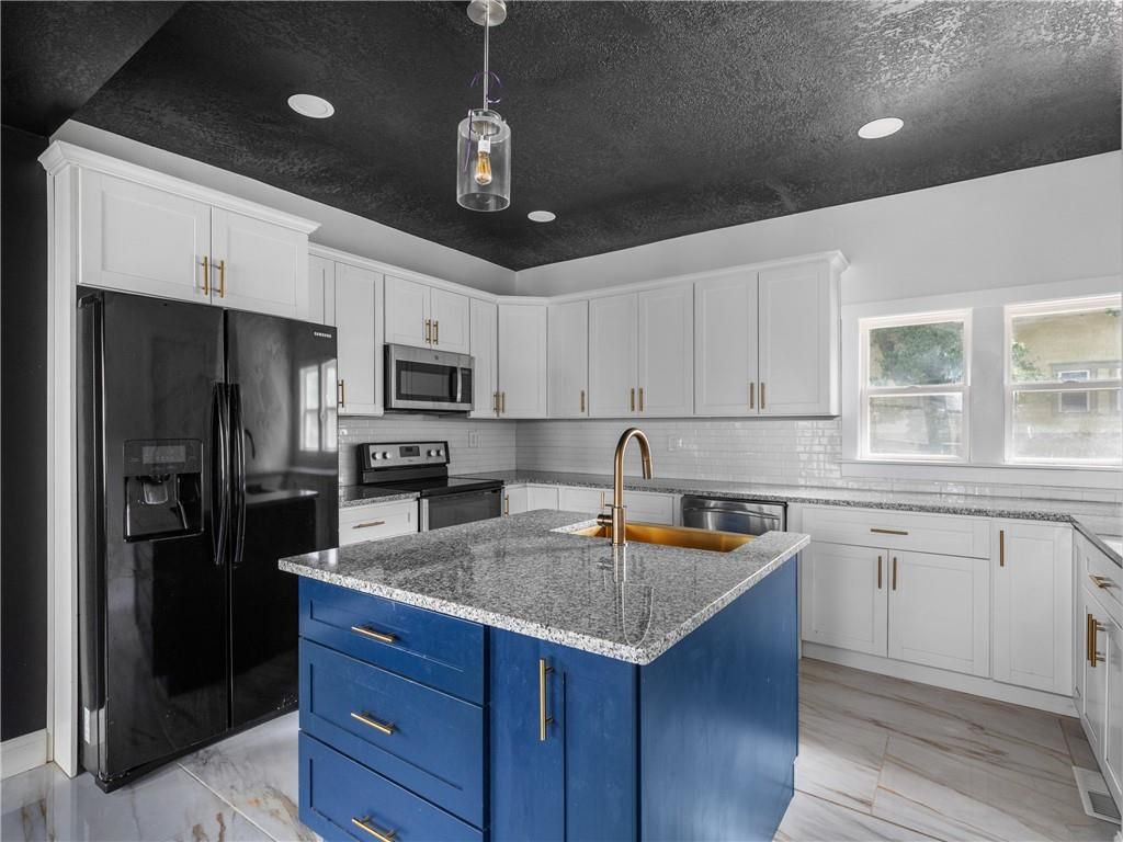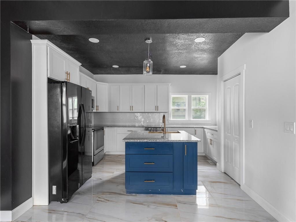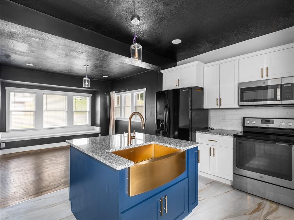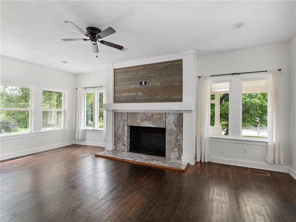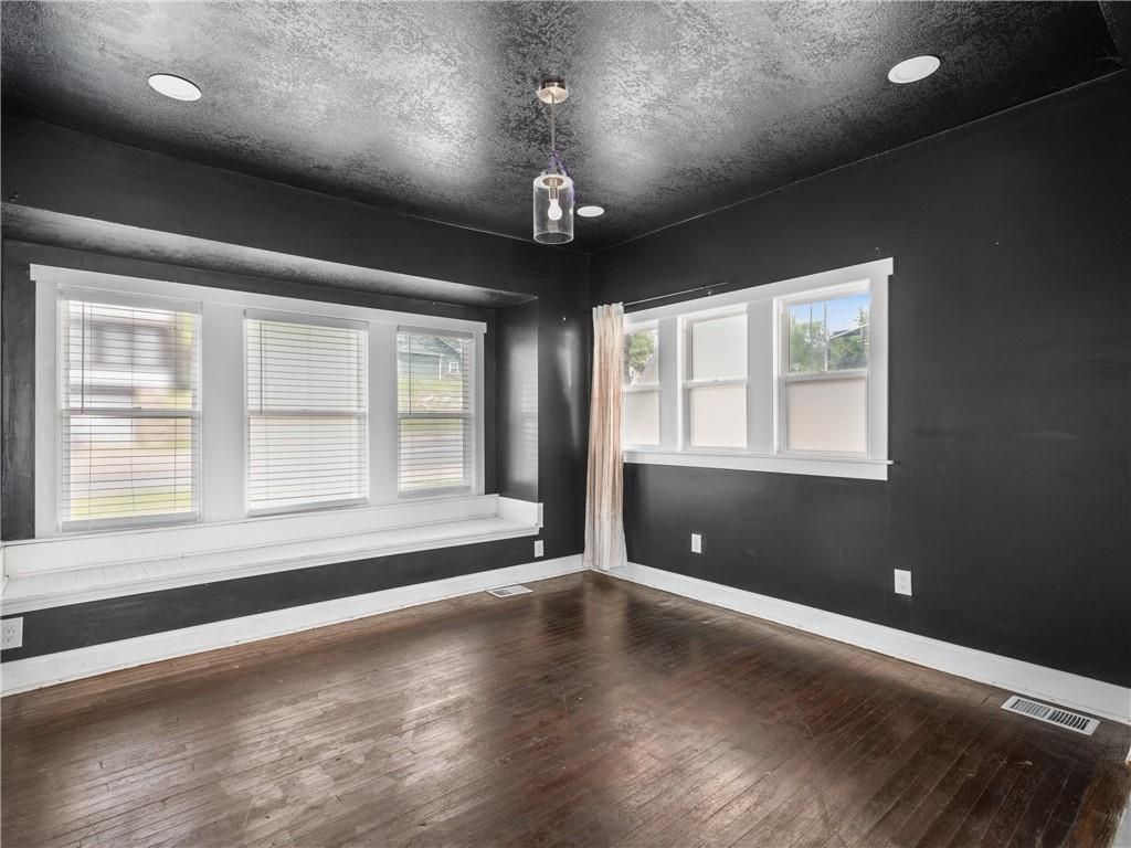 Step into the perfect blend of historic charm and modern comfort with this beautifully renovated early 1900s shirtwaist home. Set on a double lot with a brand-new wrap-around porch railing for privacy, this classic Kansas City treasure is move-in ready and waiting for you. Original charming hardwoods and staircase, complemented by new granite and marble tile, all-new windows (including a striking picture window in the stairwell), and updated light fixtures and recessed cans. This is a true three-story home with thoughtful spaces on every level. The second floor hosts a spacious main suite featuring a walk in closet, double vanity, giant soaking tub and spa-like waterfall shower and two additional bedrooms + shared bath, while the third floor offers a large guest suite with its own private bath - perfect for hosting, a home office, or converting into an income-producing space. The gourmet kitchen is a highlight, showcasing granite countertops, marble floors, stainless steel appliances, a deep soaking sink, brand-new cabinets with gliding drawers, updated hardware and a pantry. All four bathrooms shine with new vanities, tubs/showers, and designer tile. Two fireplaces with new marble facings (living room and main suite) add timeless character and warmth. TWO new A/C units, TWO new furnaces, a security system and architectural plans ready for your dream garage. A spacious wrap-around off-street parking slab adds convenience and privacy with a back door entrance. Perfectly situated in Midtown just minutes from downtown this house is ready to be a home.