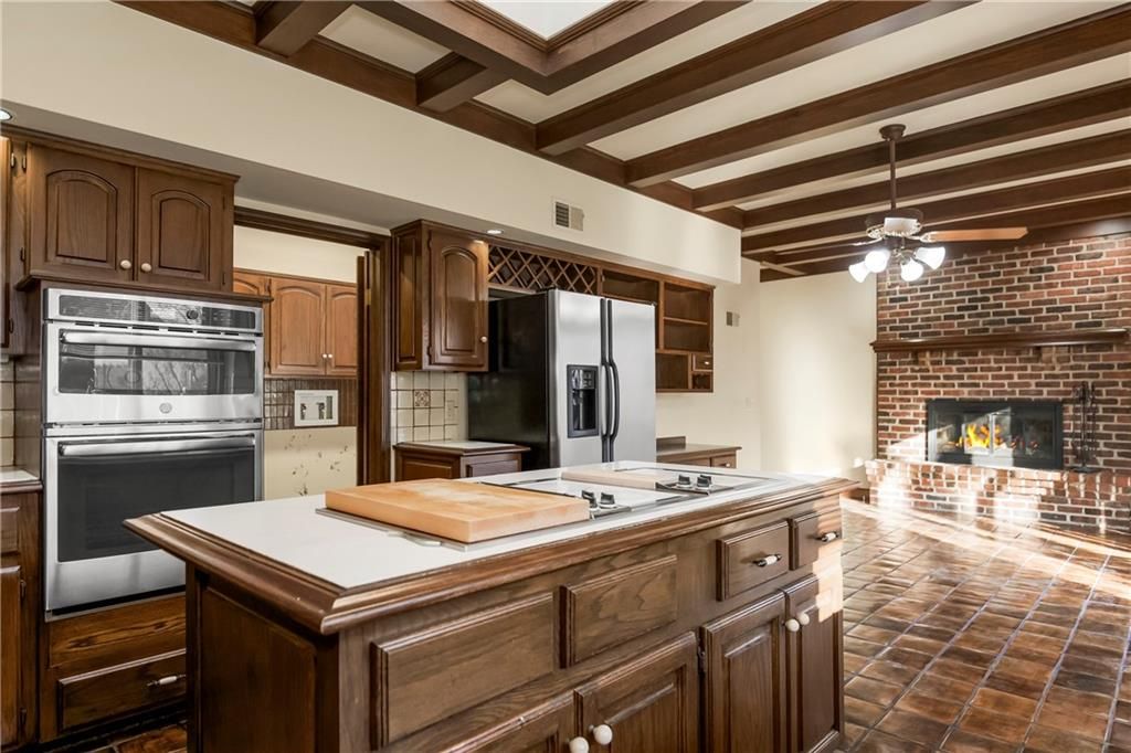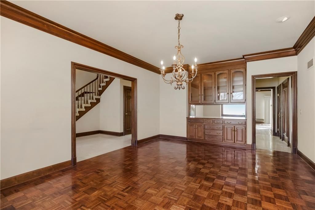 This impeccably crafted single-owner custom home, built and lived in by a master home builder for over 45 years, offers a level of construction quality and architectural detail that is simply not attainable in today's new builds without spending a fortune. Set at the quiet back of a cul-de-sac in Longwood Forest, a secluded enclave known for its one-of-a-kind homes, this property features timeless craftsmanship, oversized spaces, and endless potential for expansion. Inside, you'll find massive ceiling heights in the great room, extra-thick crown molding, and ADA-compliant walkways. First-floor living is at its finest here, with a spacious primary suite plus a main-level guest suite - perfect for multigenerational living or long-term guests. The home was designed with future growth in mind. The lower level offers both garage entry and central house entry, making it ideal for finishing into a spectacular additional living area - bringing the home to 6,000+ square feet of livable space if desired. Two large walk-in attic spaces upstairs provide the opportunity to add an additional bedroom, a laundry suite, or a mudroom. Beautiful Pittsburg, KS brick walkways and patios, stone accents, and a secluded brick courtyard have been lovingly enjoyed for decades. The circle drive, brick fence, stone-and-brick exterior, oversized front sconces, and meticulous design choices create classic curb appeal that stands the test of time. The home offers outstanding proximity to Town Center Plaza, highway access, and the new Hallbrook North development - all while maintaining low HOA dues. This is the perfect forever home for a buyer seeking exceptional bones, main-level living, and unmatched construction quality - or an incredible canvas for someone dreaming of expanding into a truly remarkable masterpiece with minimal maintenance. Homes of this caliber, character, and structural integrity simply do not come to market often. Chandelier in main entry is not included.