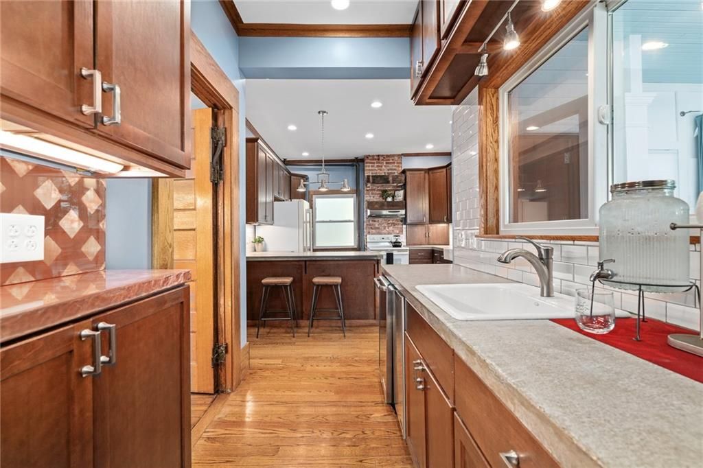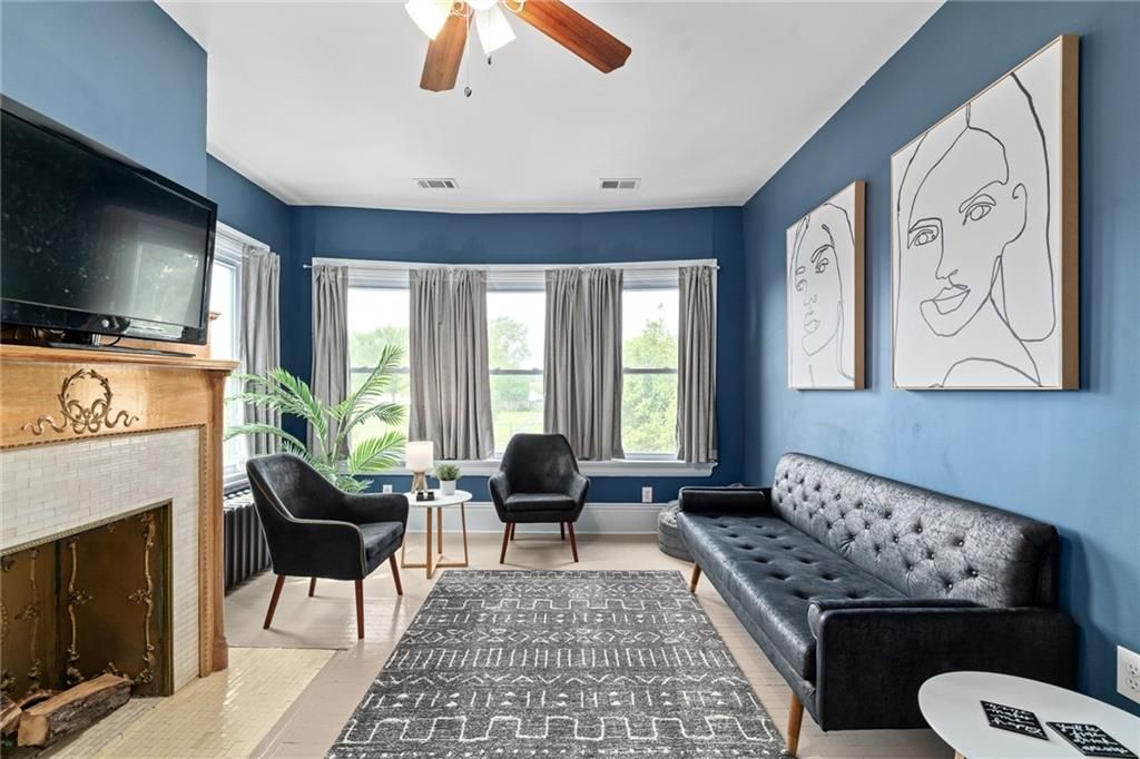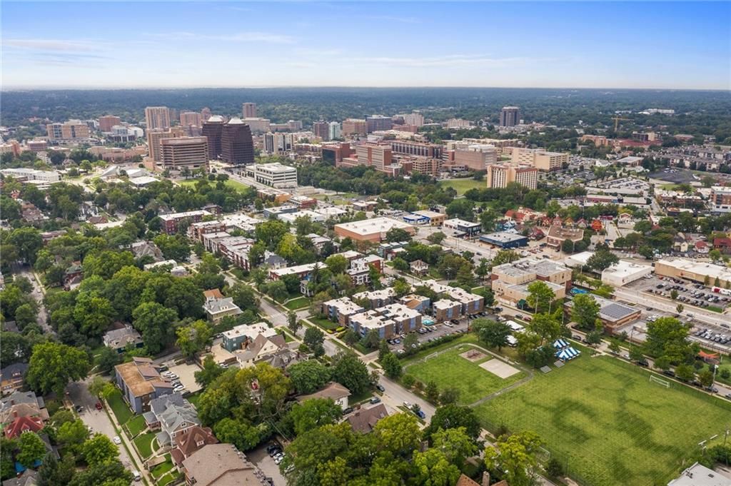 The one! Here is your chance for luxury, comfort, space, and charm all rolled into one ROCK SOLID property in the heart of KC. Own a slice of Kansas City's history which happens to be walkable to Plaza, Westport, the Art Institute, the Nelson Adkins Museum, Streetcar, Midtown Market, and so much more. This home has a healthy mix of traditional and modern luxuries such as original woodwork + working radiators juxtaposed by new kitchens + baths with updated plumbing and heated floors. Seamless living for the whole family. The butler's staircase was converted to the 'yellow submarine' half bath off the kitchen and a large storage closet on the landing. The kitchen boasts concrete counter tops, a double farm sink, a second drink bar with a copper countertop, 2nd sink, ice maker, and a mini fridge. The walk-in pantry connects the kitchen to the dining room or you can use the original double swinging door. Enjoy new and original windows throughout since the beautiful leaded windows have been expertly sealed with storms to preserve them. OH WAIT, there is more! Don't miss the large all season's room, grilling deck, covered carport, basement speakeasy, second floor sunroom/office, original clawfoot tub, walk-in closets, new stair/hall carpet AND the BONUS 3rd floor studio apartment (added income potential)! The home has been SO lovingly maintained and upgraded (ask about the efficient HVAC setup) that you will not want to leave. The front yard has the ultimate wrap around front porch overlooking the stunning magnolia tree that blooms with pink and white flowers twice per year. The basketball goal, professional landscaping, and private driveway (up to 9 cars) are also sure to please. This big blue home is the perfect place to host an elegant event or hunker down to raise your babies with ultimate versatility. It is a sound structure that was built to last another hundred years. Don't miss out! Tour today and experience this delightful home with a location that can't be beat!