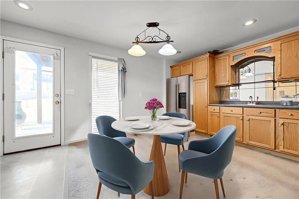 Spacious and versatile two-story home offering exceptional living and entertaining space across all three levels. The main floor features a formal living room or dining room - perfect for hosting - or the flexibility to use as a private office. An open, functional layout provides great flow for everyday living. Upstairs, you'll find four generously sized bedrooms, including a comfortable primary suite, along with two full baths and two convenient half baths throughout the home. The finished walkout lower level expands your living space with a large family room, a kitchenette/wet bar ideal for entertaining, and a fifth non-conforming bedroom. An additional area easily accommodates a pool table, home office, or hobby space, plus a half bath for added convenience. Outdoor living is just as inviting with a deck, patio and fenced yard, perfect for relaxing or entertaining. Completing the property is a detached third-car garage/workshop, offering ample space for storage, projects, or extra vehicles. This home delivers flexibility, space, and functionality - ideal for both everyday living and entertaining. Sought after Piper School District!