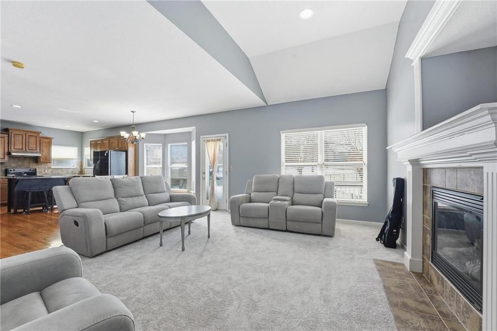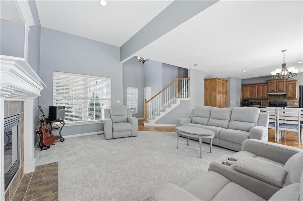 Beautiful 2 story home with cozy front porch, Welcoming entry with wood floor and offset staircase. 2 story great room has gas fireplace, large windows, open plan. Large dining area, kitchen has wood floors. Kitchen has tons of custom cabinets, center island, all with granite countertops. 1/2 bath completes the main level. Wide staircase leads to 2nd floor. Primary suite is a true retreat with huge bedroom, vaulted ceiling, ceiling fan & large walk-in closet. Private, luxury bath has dbl vanity, tile floor, separate tub & shower. 2 additional bedrooms have large closets and share jack/jill bathroom with dbl vanity & tub/shower in separate room. Laundry is located on bedroom level. ALL NEW INTERIOR PAINT & CARPET main level & bedroom level, staircases up & down, January 2026! Roof 4 yrs old. 2025-hot water heater, sump pump, shed, deck floor replaced with composite. 2024 exterior paint. Sellers finished daylight basement family room with LVP flooring, plenty of unfinished space remains for storage. Landscape updated recently.