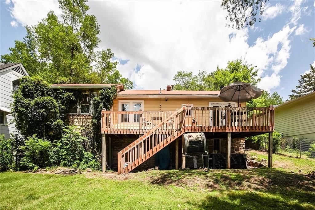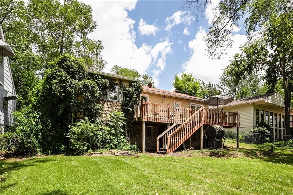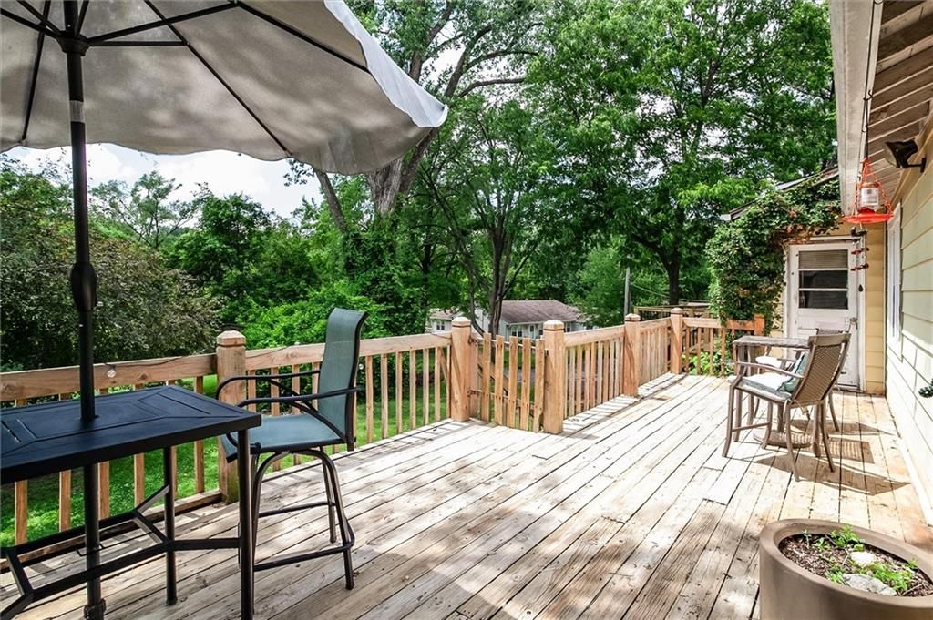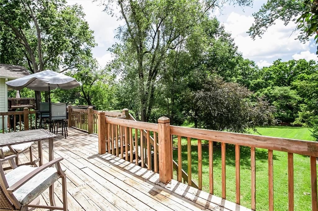 Charming LAKE FRONT cottage in Park Hill School District!!! True RANCH with cozy stone fireplace! Enjoy gorgeous views 1ST TIER! Extra large deck backs to LARGE TREED LOT and lake creating a peaceful setting. Lots of outside space for entertaining!!! Beautiful updated kitchen w/ quartz counter tops, black stainless steel appliances, floating shelves and built-in pantry. Fridge stays! Hardwood flooring with lots of character! HUGE master suite! HVAC only 2 years old!!! Workshop and extra storage space in basement! Don't miss out on this rare find!