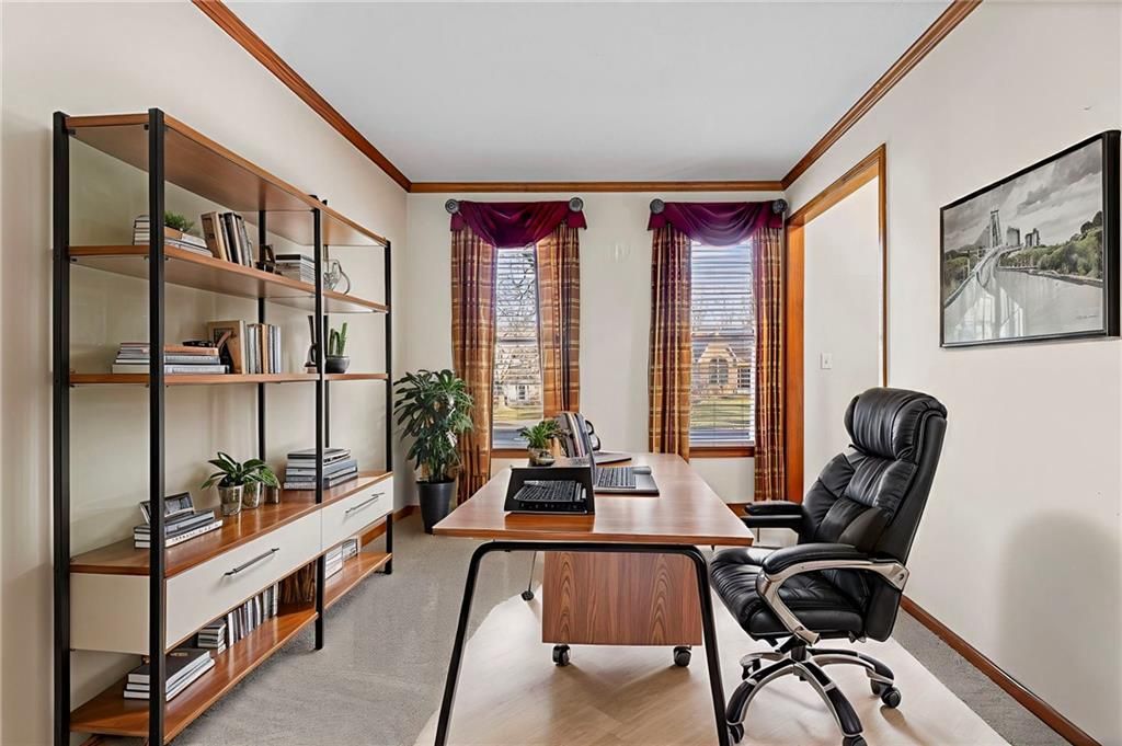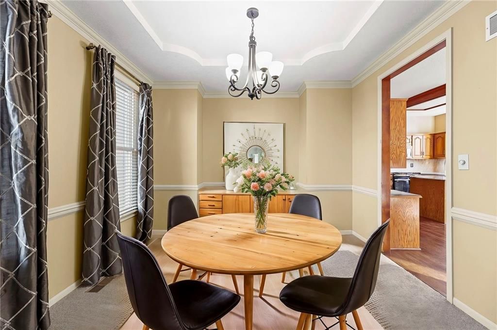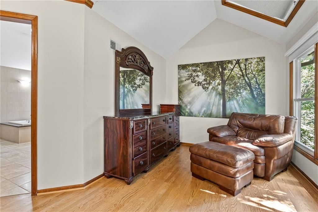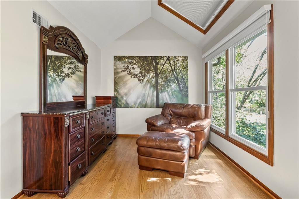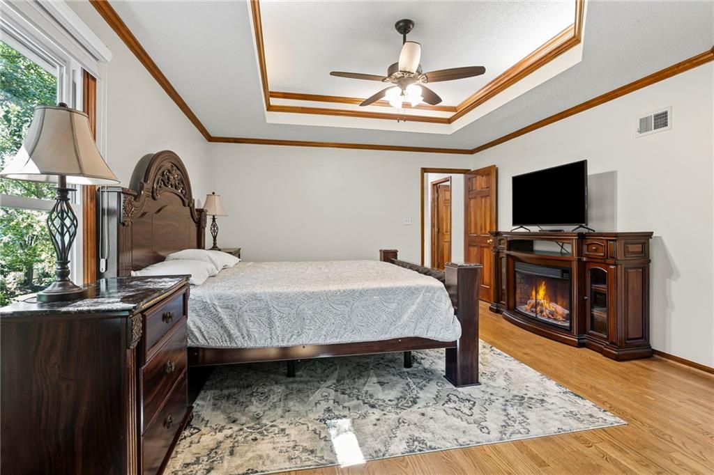 New Years just got a bit brighter with new carpet and it looks amazing! This Beautifully Maintained 2-Story in Creekside! is waiting for you. Tucked away on a quiet cul-de-sac in popular Creekside, this stunning 4-bedroom, 3.5-bath home offers an incredible blend of updates, space, and lifestyle. The private backyard is a showstopper with mature trees, a large covered deck, patio, sprinkler system, and new fencing - perfect for entertaining or relaxing outdoors. Inside, you'll love the updated hearth room and kitchen, featuring newer stainless appliances, quartz countertops, custom tile backsplash, and gorgeous hardwood floors. The main level also includes a formal dining room, spacious living room with fireplace, and a dedicated home office. The luxurious primary suite has hardwood flooring, while the remodeled bath boasts heated tile floors, a walk-in shower, and whirlpool tub. Every bedroom has access to a bathroom - one with a private en-suite, and two connected by a Jack & Jill. The finished basement adds even more living space with a large family/rec room, bonus room/home gym, and plenty of storage. This home is truly move-in ready with all the big-ticket updates already done: windows, New zoned HVAC, interior & exterior paint. Plus, Creekside offers a neighborhood pool, trails, and park - all just a short walk away. Located in top-rated Blue Valley School District