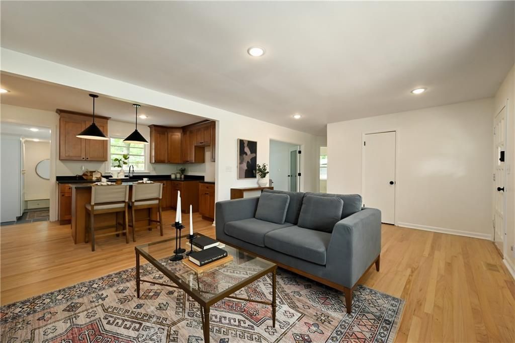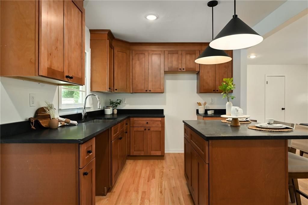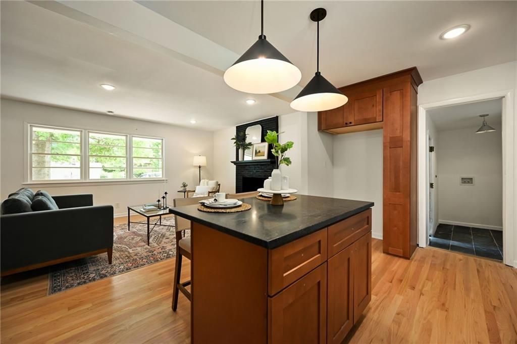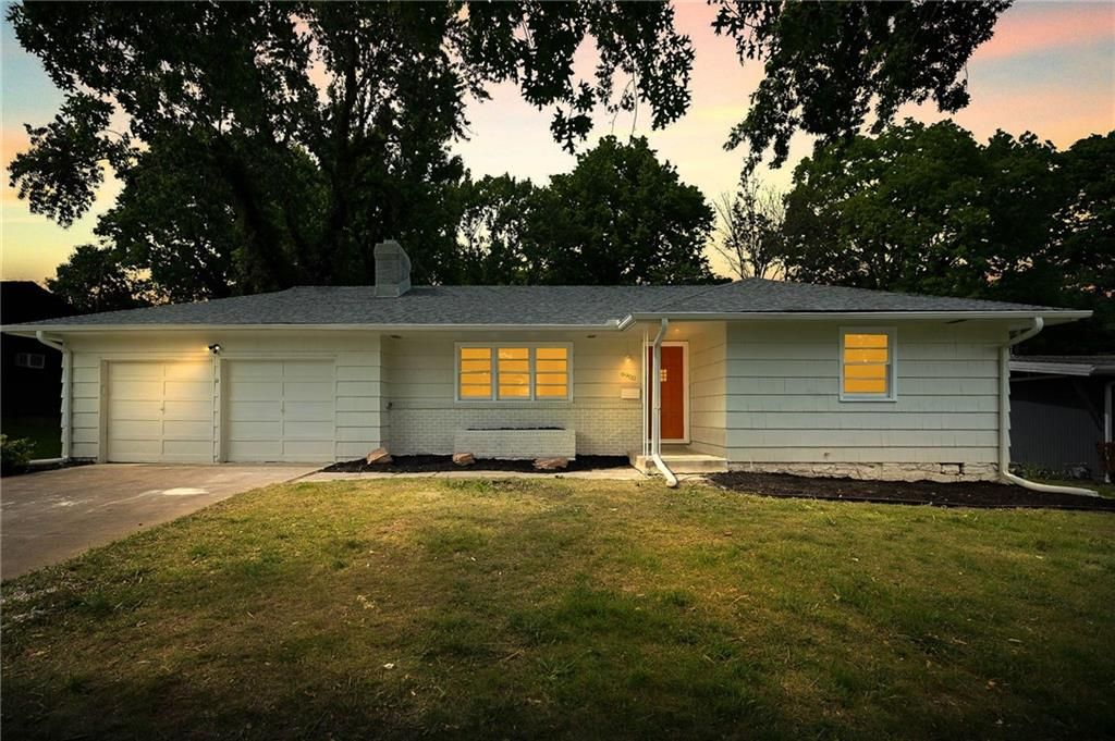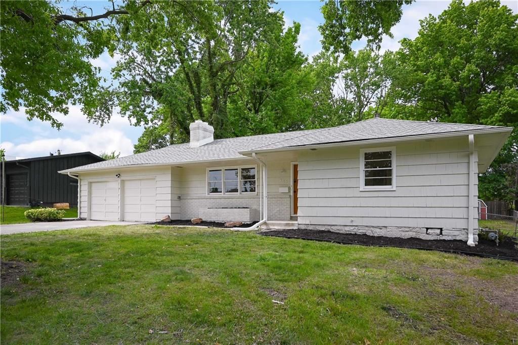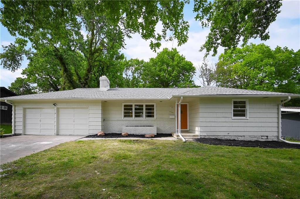 She's a Beauty!! This Overland Park ranch home awaits its new owner. The home has been freshened up from head to toe with a new layout and added primary suite. Walk into the open concept with living/kitchen combo. The hardwood floors have been refinished with the natural color radiating throughout. What a gorgeous design with the black fireplace and the black honed granite countertops in the kitchen. All new cabinetry, countertops, hardware, and faucets. The kitchen island provides an eat-in nook allowing for cooking and entertaining. The laundry room is on the main level off the kitchen. At the rear entry is a mudroom with built-ins and bench, tiled floors. The primary suite is beautiful, grand in size, with two closets and a double vanity bathroom. Newly tiled floors and marble shower. Absolutely stunning! The hall bath is also updated with the other 3 bedrooms on the East side of the home. Utilize the French doors bedroom as a 4th bedroom or a formal dining room if desired. The home sits on a dead end street making it peaceful and quiet with less traffic. It provides a 2 car oversized garage for parking and storage. A great sized back yard with concrete patio, shed, and fenced in yard. Appliances have been ordered, SS stove, dishwasher, microwave vent hood to be installed very soon!!