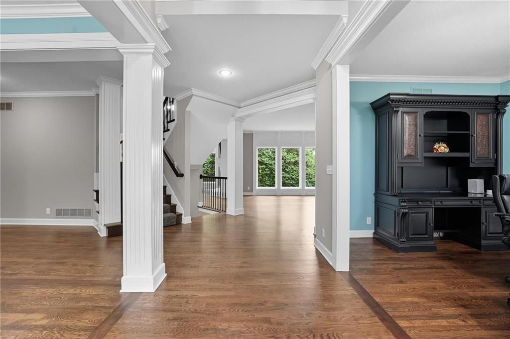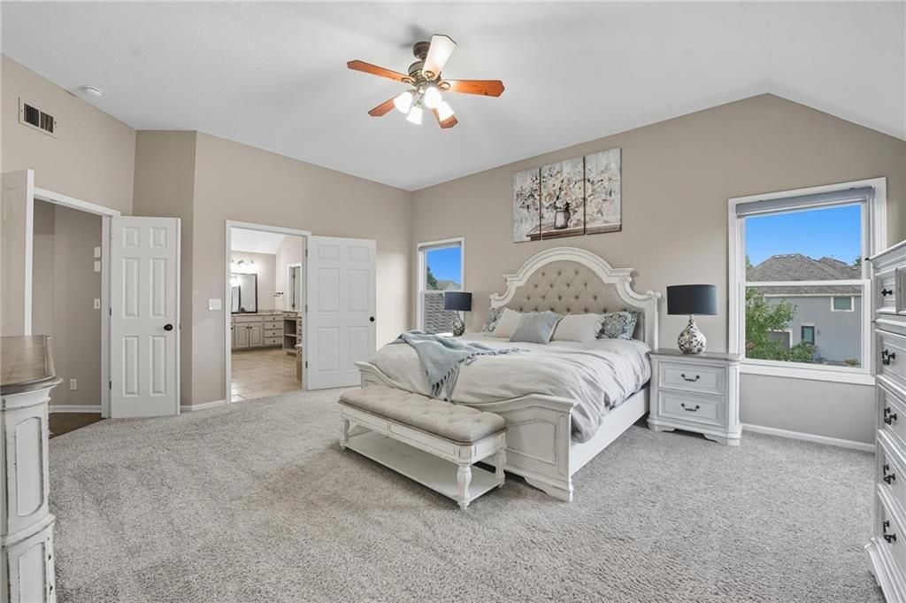 Welcome home to this gorgeous 2 Story home in the sought after neighborhood of the Greens of Chapel Creek, where style meets everyday living. Natural light fills the main level, highlighting a layout that is perfect for both day-to-day life and entertainment. The main level features soaring ceilings, a private office and a separate formal dining room right off the main entry. The hearth and great rooms both feature their own separate fireplaces along with walls of windows! The gourmet kitchen features a large island, walk-in pantry, and plenty of cabinet space. This home is an entertainer's dream! Upstairs you will find an expansive Primary Suite that is a true retreat! Featuring vaulted ceilings, making it feel even more open and serene, while the spa-like Bathroom features a walk-through shower, soaking tub, and his-and-her vanities for all the convenience and comfort you could want. The large walk-in closet keeps everything organized and easy to access. Bedrooms 2 and 3 share a Jack and Jill Bathroom while Bedroom 4 is a Guest En-Suite featuring its own private Bathroom. The large loft area overlooking the main floor also includes a custom, built-in desk providing a perfect area for after-school homework. The walk-out lower level features a finished Recreation Room that adds nearly 600 square feet of finished space along with tons of additional unfinished storage area! Outside, the expansive deck overlooks a fenced backyard, and is ideal for entertaining, morning coffee, or just relaxing after a long day. Sitting on a corner lot, the home has great curb appeal and extra privacy, and the thoughtful landscaping gives it a warm, inviting feel from every angle. Do not miss this one!