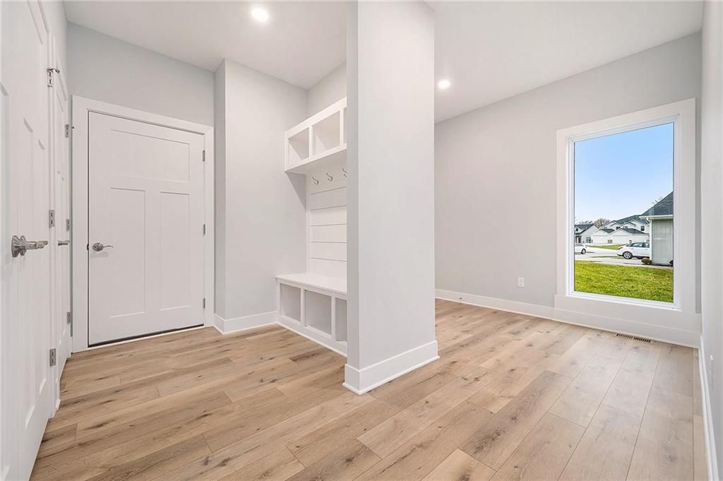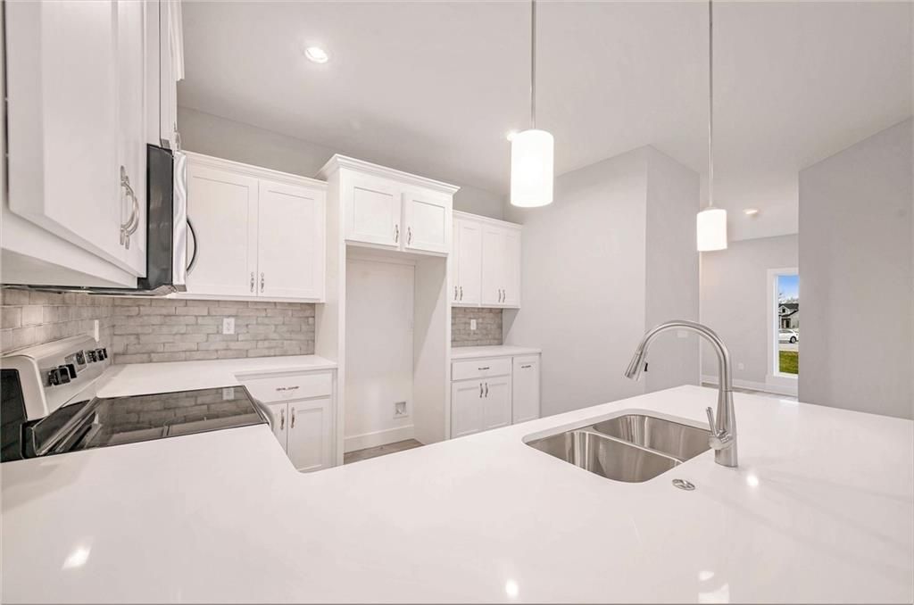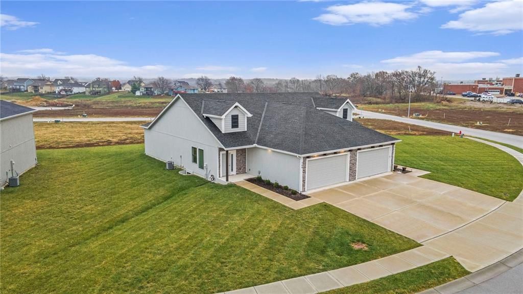 Luxury living, everyday convenience, and small-town charm come together in this gorgeous maintenance-provided community in the heart of Smithville. Thoughtful design begins with true zero-entry access at both the front door and garage, offering comfort and accessibility from the moment you arrive. Inside, light wood floors lead you into an inviting living room featuring a gas fireplace with a striking stone and shiplap surround. The open layout seamlessly connects to the stylish white kitchen, complete with a tile backsplash, quartz counters, stainless steel appliances, and a peninsula with bar-stool seating for effortless daily dining. The spacious primary suite easily accommodates king-sized furniture and includes a private ensuite bath with a dual-sink vanity, walk-in shower, and a generous walk-in closet with built-in shelving. A secondary bedroom provides excellent storage and makes a perfect guest room or home office. The expansive unfinished lower level is ready for your personal touch and already stubbed for a third full bath. High-speed fiber internet is available, making work and streaming a breeze. Step outside and enjoy unbeatable proximity to Downtown Smithville, boutique shops, restaurants, Smithville Lake, parks, walking trails, and quick highway access. KCI Airport and Downtown Kansas City are just a short drive away. Positioned next to Smithville High School and surrounded by community amenities, this location offers a perfect blend of comfort, connection, and convenience. With brand-new floor plans, designer finishes, and a warm small-town atmosphere, this home is where modern luxury truly feels like home.