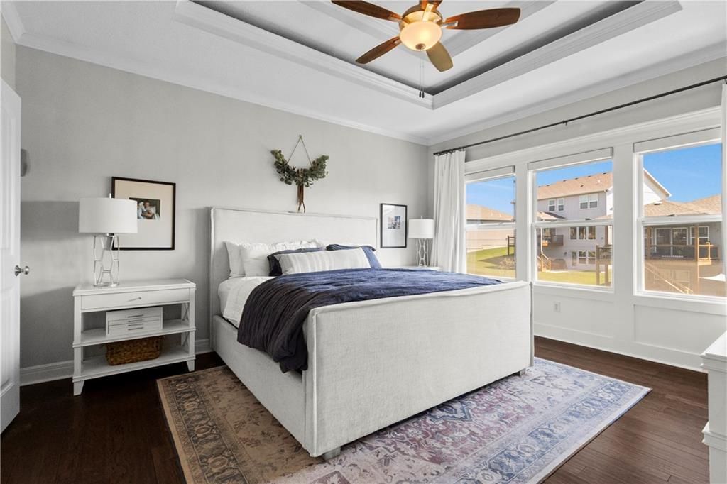 Experience elegant modern living at 7445 Northwest Forest Lakes Drive, an exquisite reverse 1.5 story home nestled in the charming Chapel Ridge community of Parkville, MO. This impeccably designed residence offers a seamless blend of luxury and functionality, featuring four spacious bedrooms and three well-appointed bathrooms. Step into an open and inviting layout on the main level, ideal for entertaining guests or enjoying cozy family gatherings. The chef's kitchen is a culinary dream, complete with an oversized eat-up island and a convenient walk-in pantry. Walk out onto the covered deck to relish the serene views of the fenced backyard, or head downstairs to the private concrete patio adorned with twinkle lights, perfect for al-fresco dining under the stars. The setup for an outdoor TV transforms this space into a charming outdoor entertainment area. The walkout lower level is a dream come true, boasting high ceilings and abundant natural light. It features an impressive bar with an island and an open living area, providing the perfect spot for a large TV or projector for watching your favorite sports teams or family movies. This level also accommodates two additional bedrooms and another bathroom, offering versatile spaces for guests, a home office, or a personal gym. A massive unfinished basement area provides ample storage options and potential for future expansion. Located in the non-maintenance provided section of Chapel Ridge, this home benefits from lower HOA fees while offering proximity to historic downtown Parkville, a quick commute to downtown Kansas City, and easy access to the new MCI airport. Embrace the opportunity to own a piece of modern elegance in a vibrant community.