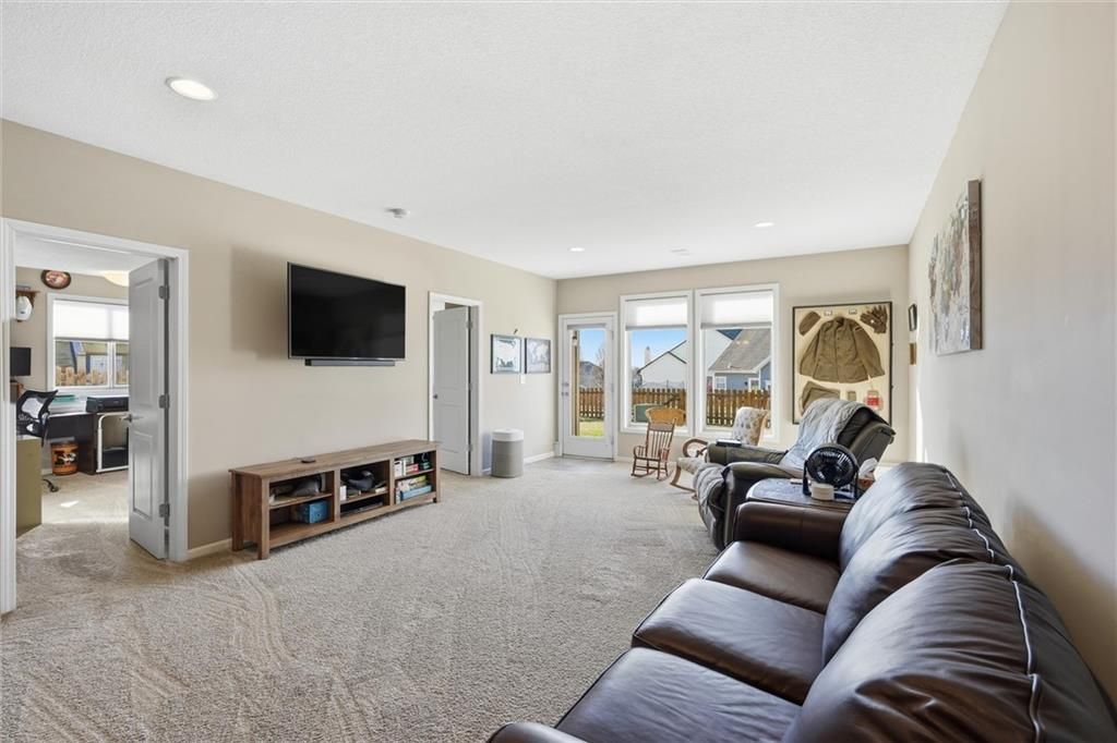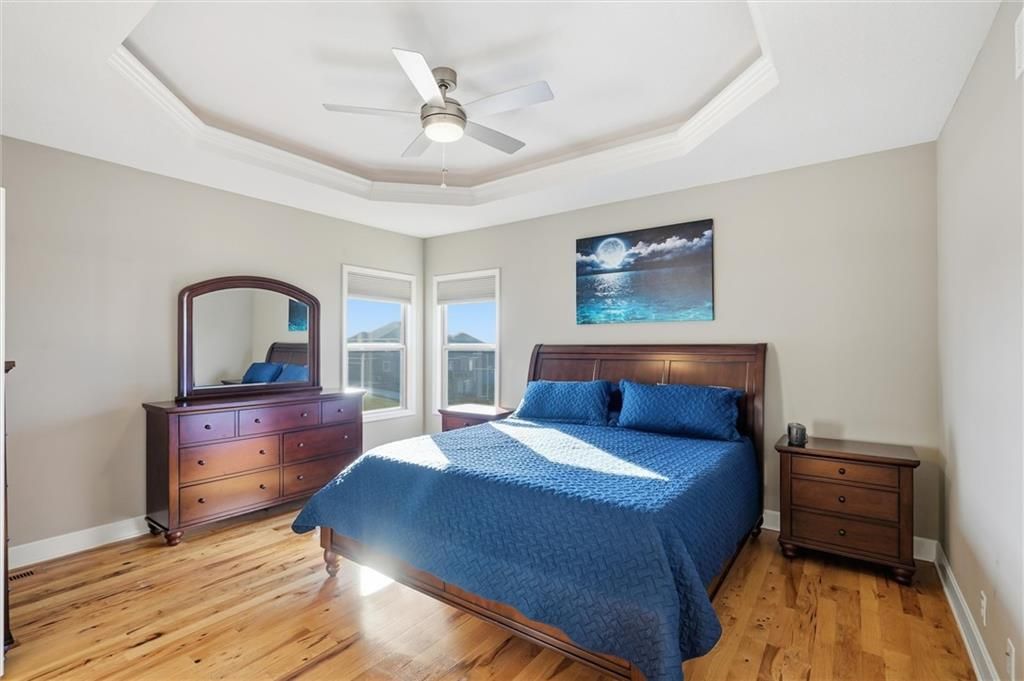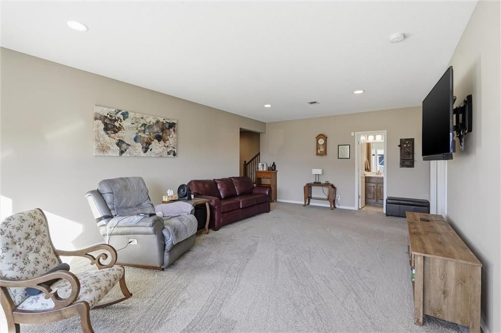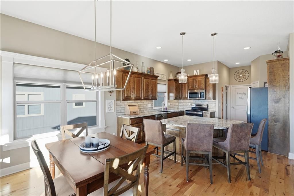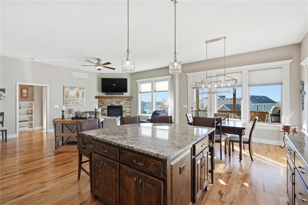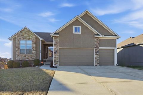 Pride of ownership abound in this one-owner, custom built Raymore Reverse 1.5 Story home. This open and impressive 4 bedroom, 3 bath layout features a gourmet kitchen with stainless steel appliances and refrigerator, stunning upgraded granite, massive island, walk-in pantry, soaring 10ft ceilings and more! Main floor features large primary bedroom as well as second bedroom/office, gleaming hardwoods, corner fireplace and tons of light. Full finished walk-out lower level offers large family room, two bedrooms, full bath and ample storage with shelving. Additional features include: large fully tiled, dual head primary shower, expanded granite island, washer/dryer and more! This meticulously maintained home sits on a quiet street in the desirable Shadowood neighborhood just blocks from pool, trails and city park. No reason to build...this amazing home is ready for delivery! A truly must see Raymore opportunity!
