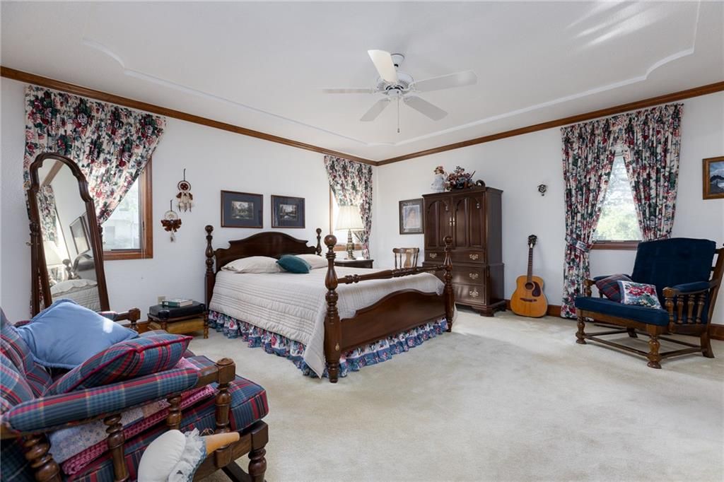If you've always wanted to live at Weatherby Lake - now is your opportunity! This Lovely 1 1/2 Story home is just waiting for you! Beautiful corner lot (.42 acres) that's been meticulously cared for! The Pride of Ownership is evident everywhere you look. From the vaulted entry with skylight to the solid core doors everywhere (on all levels!). The Great Room features 10 ft ceilings and a beautiful WBFP with gas logs flanked on both sides by bookshelves. There's a Formal Dining room for those special occasions and a cozy eat-in kitchen/breakfast area for your morning coffee. The primary bedroom on the main level is generously sized and includes an ensuite bath with garden tub and separate shower, double vanities, & 2 walk-in closets. The laundry room is conveniently located on the main level. The upper level features a loft/sitting area and 2 large bedrooms (both with walk-in closets) and a full bath. The finished lower level offers space for a pool table/game area plus a comfortable gathering space near the 2nd WBFP! And there's still room for a large storage area and 1/2 bath. The 2 car Attached Garage includes openers and NEW doors in '24. The lower level 3rd garage is perfect for that "classic car" or just the lawn equipment and lake toys! There's a deck and patio off the kitchen to enjoy warm summer nights. The furnace is newer (2020) and the A/C was replaced in Oct '23! And the gutters are apppox 2 yrs old. This home has been loved and cared for by the original owner and it shows!! Now add to all that - the fun of living at the Lake and it just doesn't get any better!! Enjoy all that Weatherby Lake offers...swimming, fishing, community events & more! Don't miss the chance to own in this amazing Lake community!