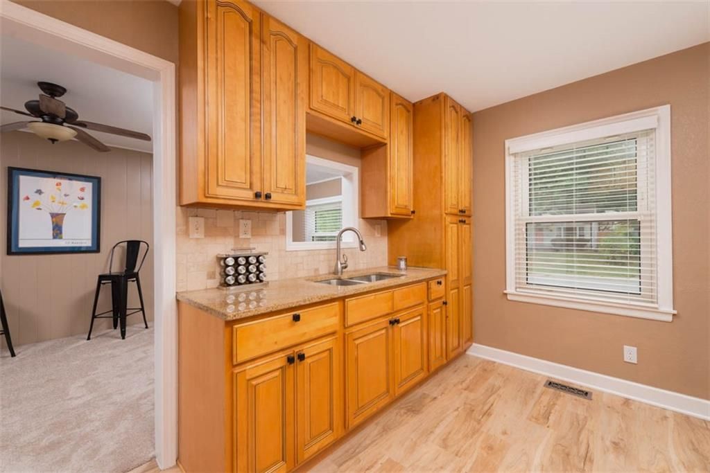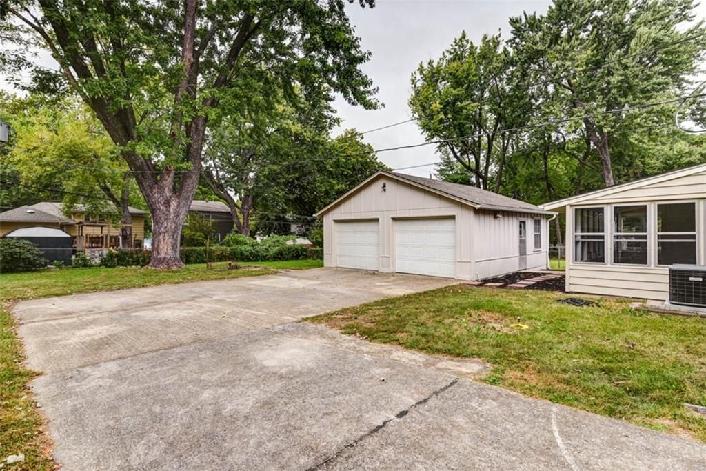 Situated on nearly a -acre level lot in the heart of Waldo, this charming Ranch home welcomes you with thoughtful updates and character at every turn! Inside, freshly painted walls, trim, and ceilings create a crisp backdrop for beautifully refinished raw wood floors that stretch through the living and dining areas, hallway, and bedrooms. Sunlight fills the living room and flows naturally into the kitchen, where new LVP flooring, updated lighting, newer cabinetry, granite countertops, full pantry, and a new vent hood bring a clean, refreshed feel. The bonus family room showcases new carpet and creates a comfortable retreat for movie nights, a home office, or play space. The bright three-season sunroom features new insulation and paneling and offers the perfect spot for morning coffee, while the adjoining mudroom adds everyday convenience. The lower level offers a rare interior entrance to the basement and has been freshly painted to feel bright and inviting. Outside, the impressive 535-sqft oversized garage provides space for vehicles, a workshop, or hobbies, an exceptional find for this neighborhood. The expansive, level lot is ideal for gardening, entertaining, or simply enjoying extra outdoor space in the city. With new front porch floorboards, updated exterior lighting, and fresh paint, the curb appeal is every bit as welcoming as the interior. Located just minutes from Ward Parkway shops, restaurants, parks, and highway access, this move-in-ready Waldo gem pairs charm and updates with a lot that's truly hard to find.