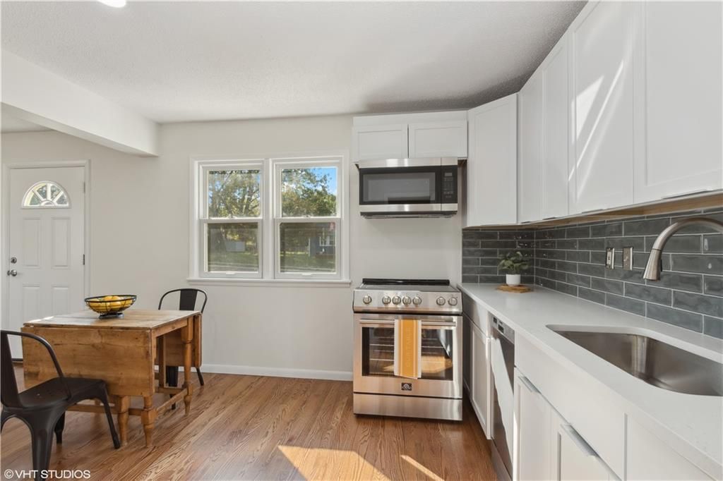 You will love this completely updated ranch home because of the shiny hardwood floors throughout and the gorgeous tiled floor in the renovated full bath. The kitchen features quartz counters, new sink, new cabinets and new stainless steel appliances. The laundry room is conveniently located off the kitchen and leads to the secure 1 car attached garage. The previous owner had replaced the furnace, AC, water heater and all windows. The level yard has a designated spot for a bountiful garden and the lot is bounded by two, wooden privacy fences. Walk to the Overland Park farmer's market as well as shops and coffee houses. An easy drive to I-35. Come see for yourself! Listing agent is related to the seller.